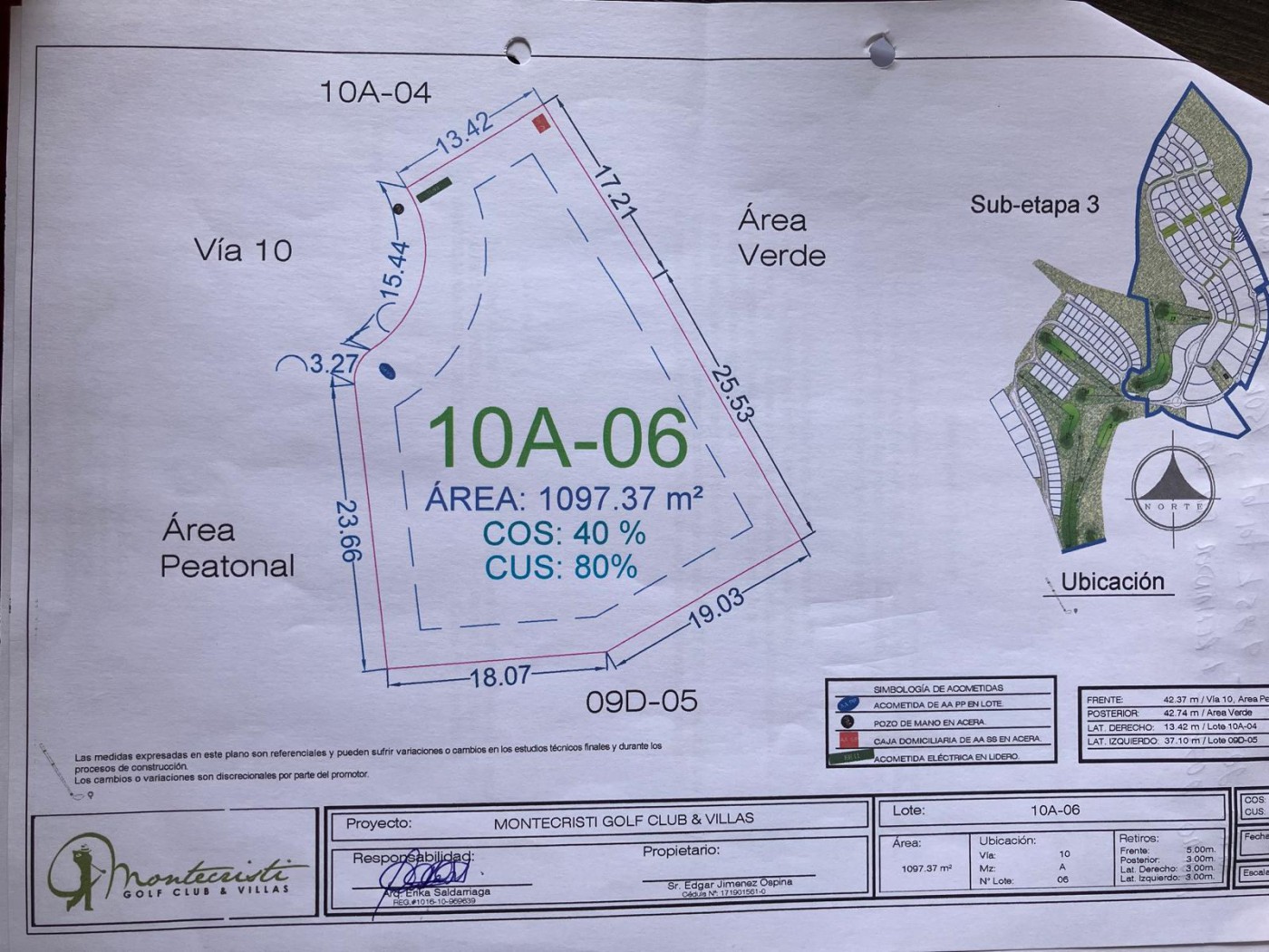 This property can be subdivided and the seller would consider half if someone is interested. It is located within a secure urbanization on the golf course. This lot is at the end of a cul de sac and is close to a recreational area including pool, gym, concession and grass fields. This lot also borders on protected gree...