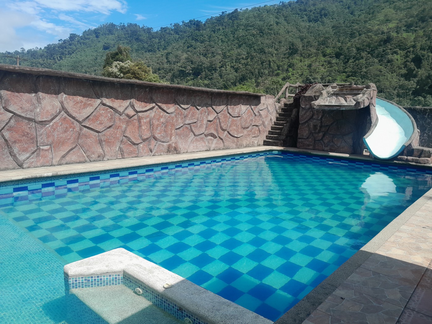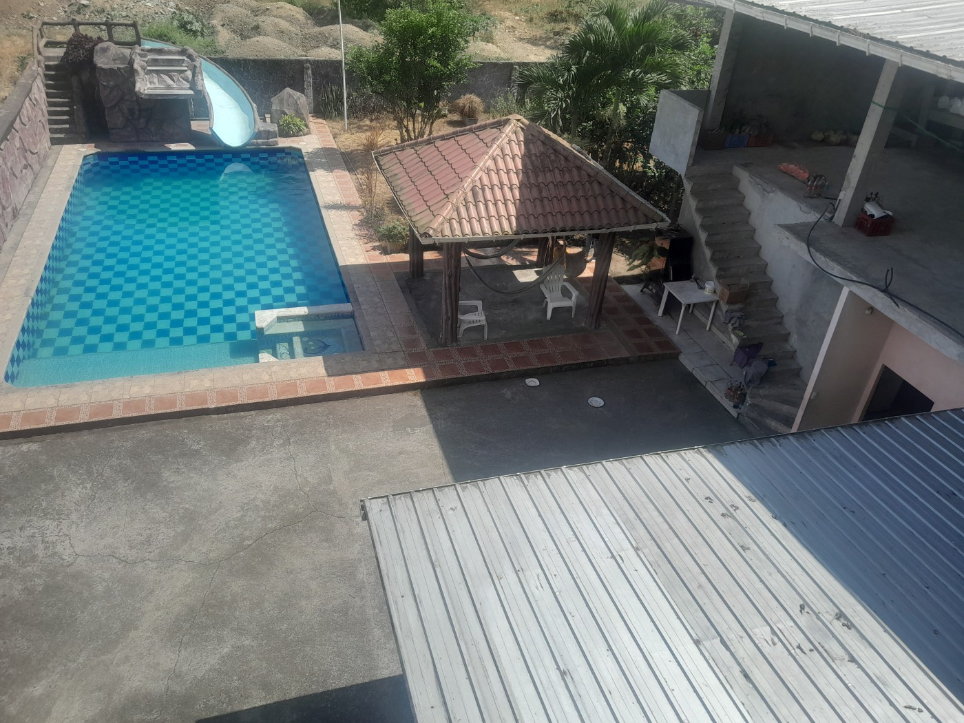 - Swimming pool with slide and two outdoor showers