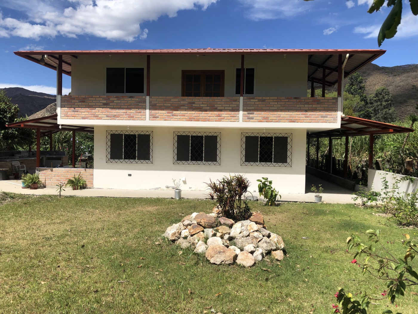 Located in the village of Palmira-Quinara, this farm offers a well-maintained and fertile natural environment, ideal for those seeking a peaceful and productive lifestyle. Organically cultivated land supports a coffee plantation with future commercial potential, surrounded by eucalyptus and pine trees, as well as a beautiful variety of ornamental plants. The property boasts a wide range of fruit trees in full production, including lemon, bananas, avocados, mangoes, mandarins, apples, oranges, and cacao. Its proximity to the river, along with access to both potable water and irrigation canal water, ensures a reliable supply year-round and the orchards are drip line irrigated. There are three fully furnished homes on the property: a main house with 4 bedrooms, 3 bathrooms, a study, living room, kitchen, and dining area; a small house with 1 bedroom, a study, 1 bathroom, kitchen, dining, and living area; and an apartment with 2 bedrooms, 1 bathroom, kitchen, dining, and living area. All homes are ready to move into. The farm includes a spacious storage building, an area for raising chickens, internet connection, and a security camera system. This is a perfect property for those looking to live surrounded by nature, with comfort and the opportunity to develop a sustainable agricultural project. Additionally the seller has a Caterpillar 246B that is not included in the asking price but is negotiable, comes with Bucket, forks and several extras.
