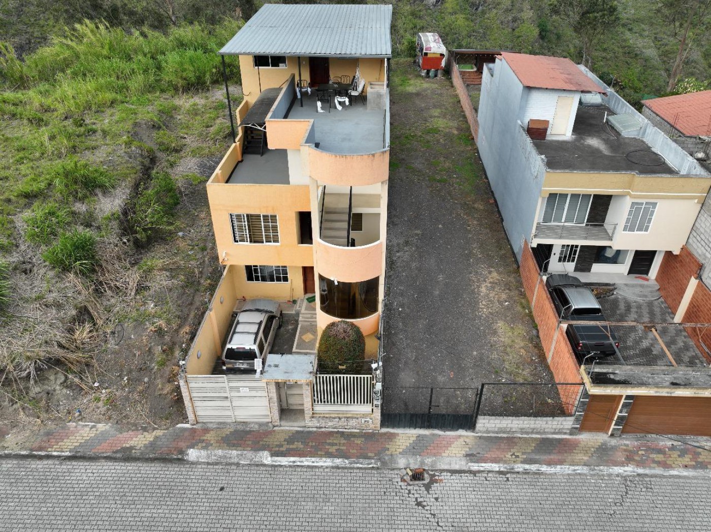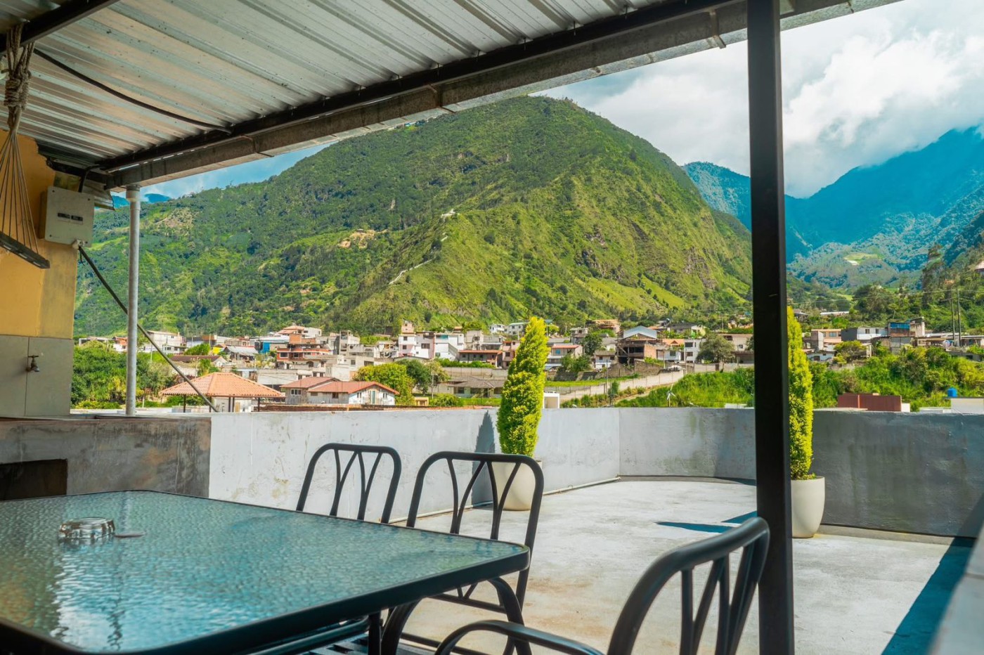 Income-generating property in Ba~nos with four floors of rental units: two full apartments, two mini-apartments, a private suite, and a two-bedroom penthouse. Guests enjoy volcano-view terraces and a 165 m2 patio with jacuzzi, barbecue, and sports court. Ideal for Airbnb investors seeking high occupancy and stable revenue.