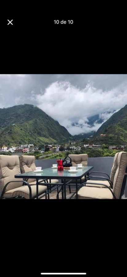 Casa en alquiler en Banos ideal para Airbnb con lote de 365 m2 y 459.38 m2 de construccion, ubicada en zona en desarrollo con plusvalia creciente, muy buscada para rentas vacacionales por su ubicacion tranquila, segura y cercana al centro de Banos. Planta baja: apartamento completo de dos habitaciones amplias con closet, sala, cocina y area de estudio abierto. Segunda planta: apartamento completo de tres habitaciones amplias con closet, sala, cocina y area de estudio. Tercera planta: dos miniapartamentos con una habitacion, sala y cocina; una habitacion privada con bano privado; terraza. Cuarta planta: apartamento de dos habitaciones con sala y cocina; terraza con vista al volcan. Amenidades adicionales: patio de 165 m2 con area de lavanderia, jacuzzi cubierto, area de barbacoa y espacio abierto ideal para cancha multiproposito de futbol y voleibol. Capacidad para 30 personas con ingreso minimo mensual de $3120 y anual de $37440.