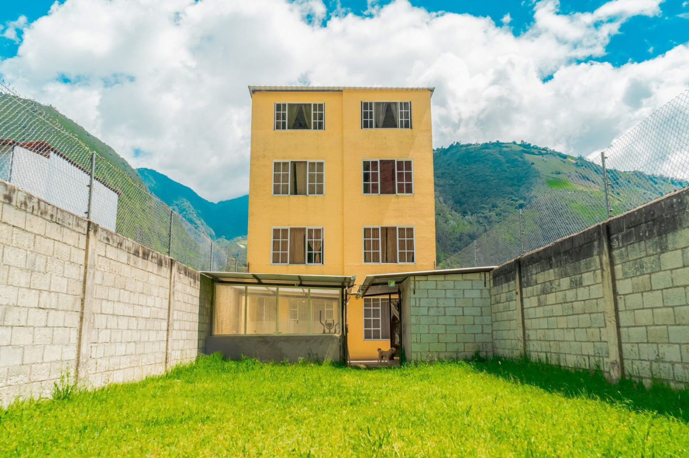 Spacious four-story rental house in Banos ideal for vacation rentals, offering nine bedrooms across five units and extensive amenities with volcano views.