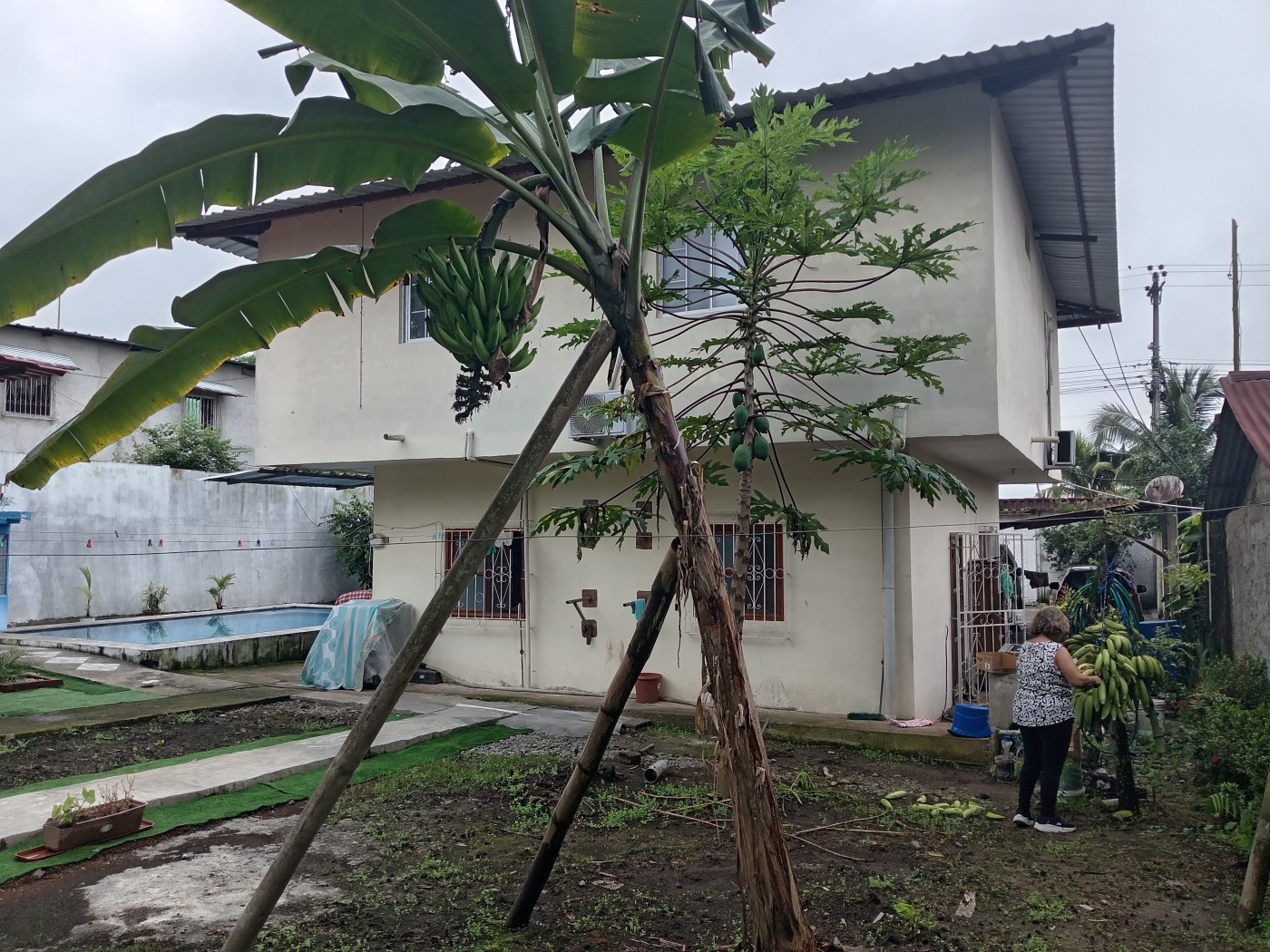 A versatile 1,350 m^2 plot in Quevedo near UTEQ featuring a multi-unit residence, pool, and fertile grounds for cultivation.