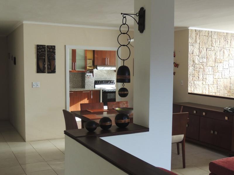 super-market. Patio has a built-in barbecue area and service master bedroom has a very large walk-in closet with built-in cabinets and drawers. The master bath has dual sinks, a whirlpool tub and a compartmentalized shower and kitchen has upgraded granite countertops and cabinets with a dining bar at one end. There is a laundry area adjacent to the kitchen. There is also an office area adjacent to the dining/living space. In addition to the three bedrooms there is a movie room with a full wall screen. The movie room could easily be converted to a fourth bedroom.