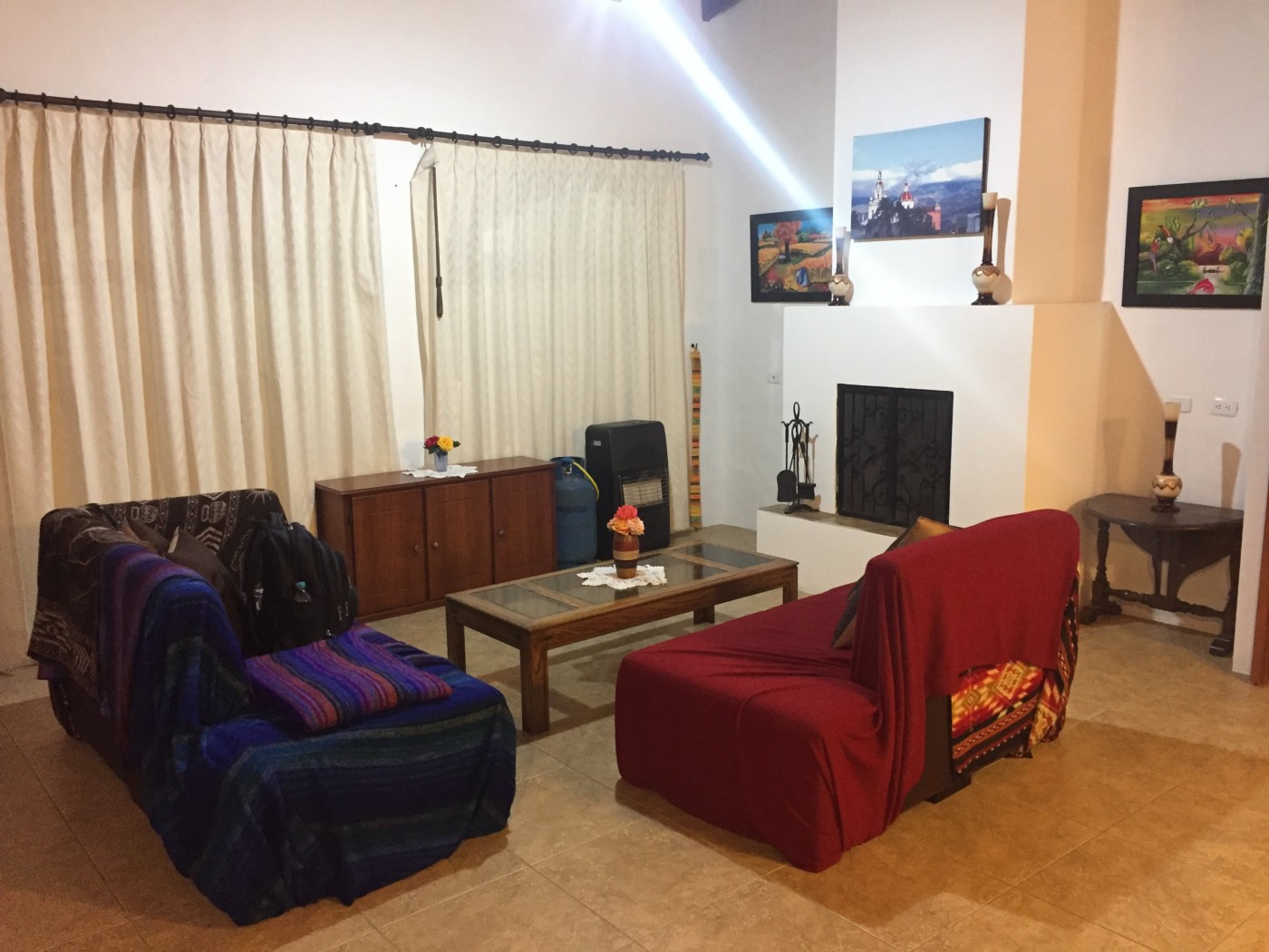 The house features a great room, with lounge and dining room, fireplace, high timbered ceilings and tiled floors. The lounge suite seats four, all recliners, nestled around the fireplace and 32-inch television. The dining room seats six comfortably. Safe, secure 3 home complex, no HOA fees. A portion of the proceeds will go to (Cotacachi`s Scholarship Program)