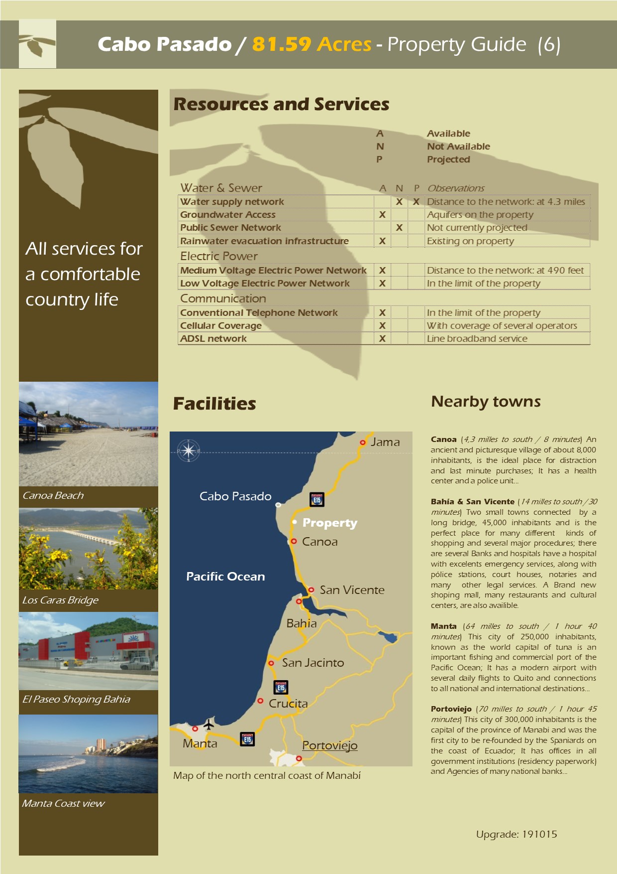 Located 2,4 milles into the coastline, in the area of influence of Cabo Pasado, the property is in a