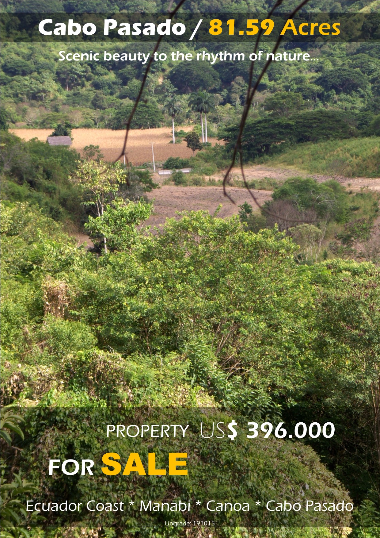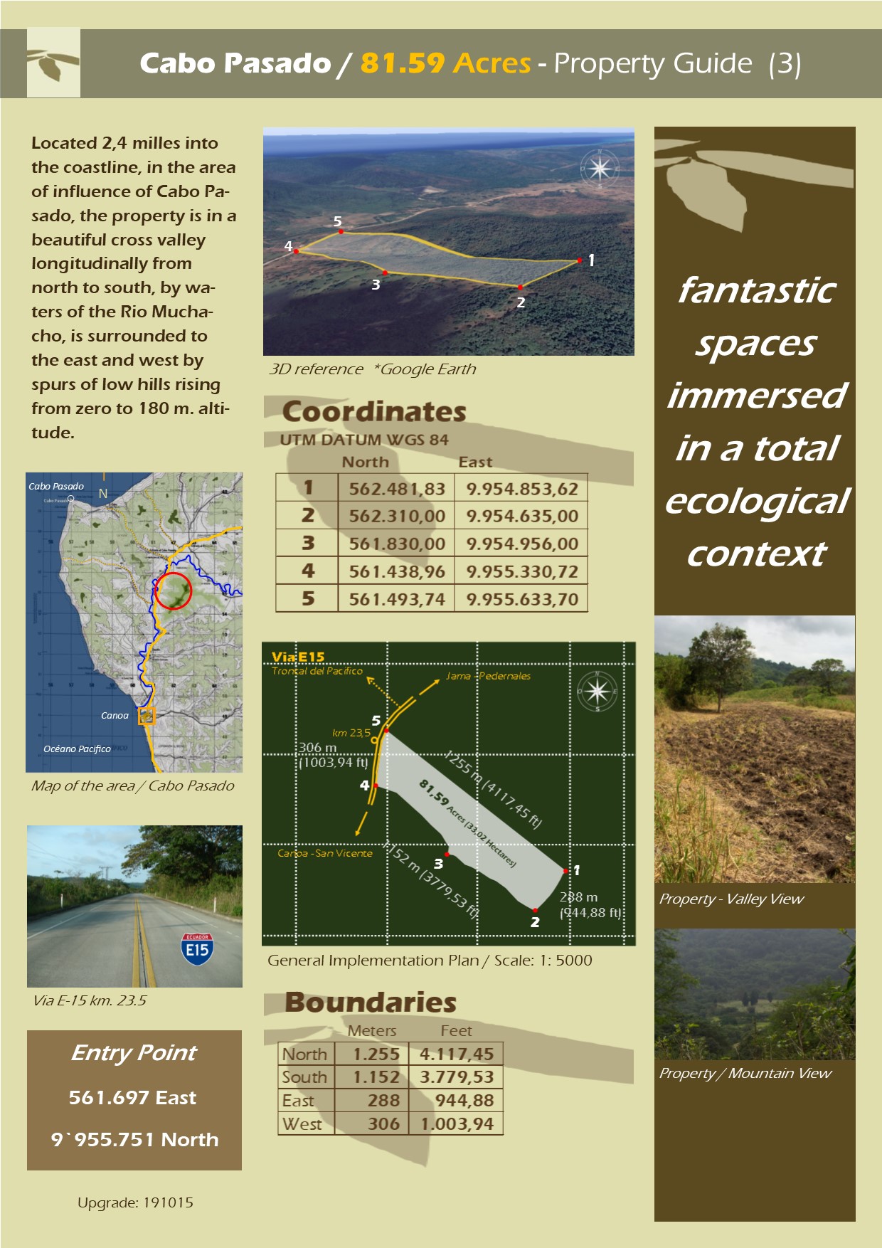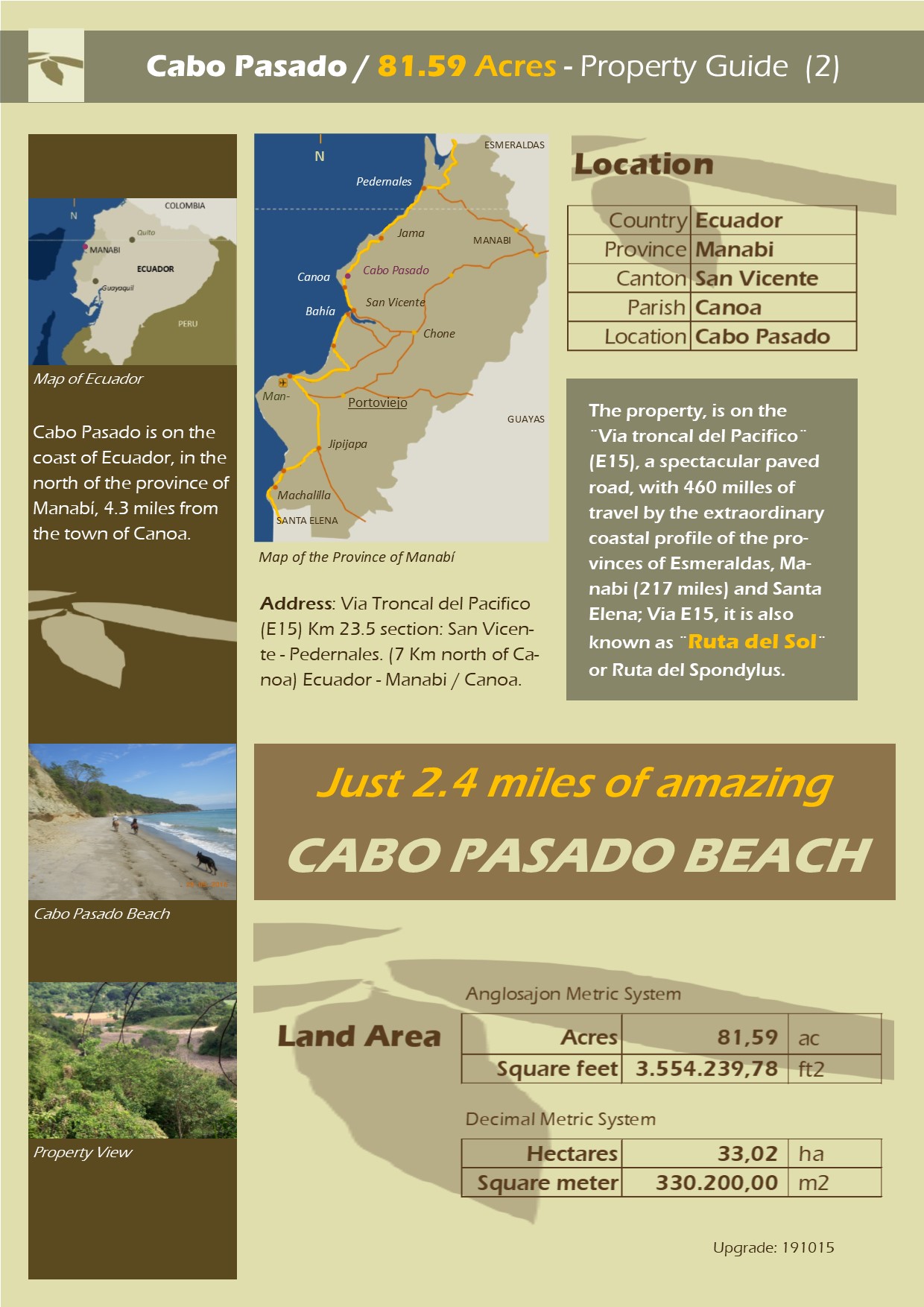 The property, is on the ¨Via troncal del Pacifico¨ (E15), a spectacular paved road, with 460 milles of