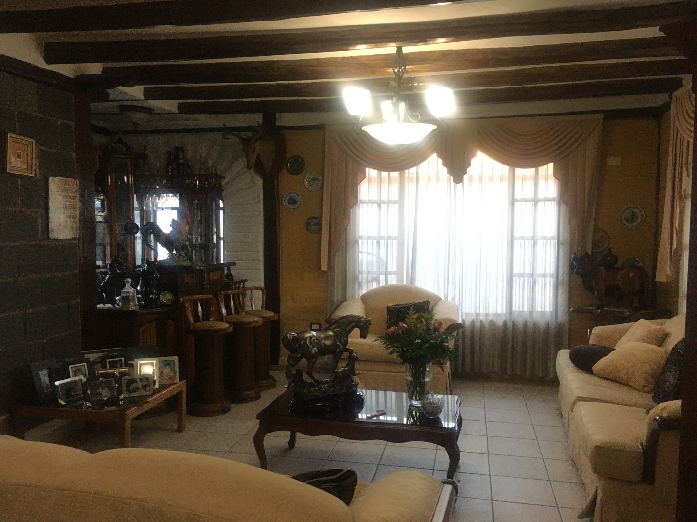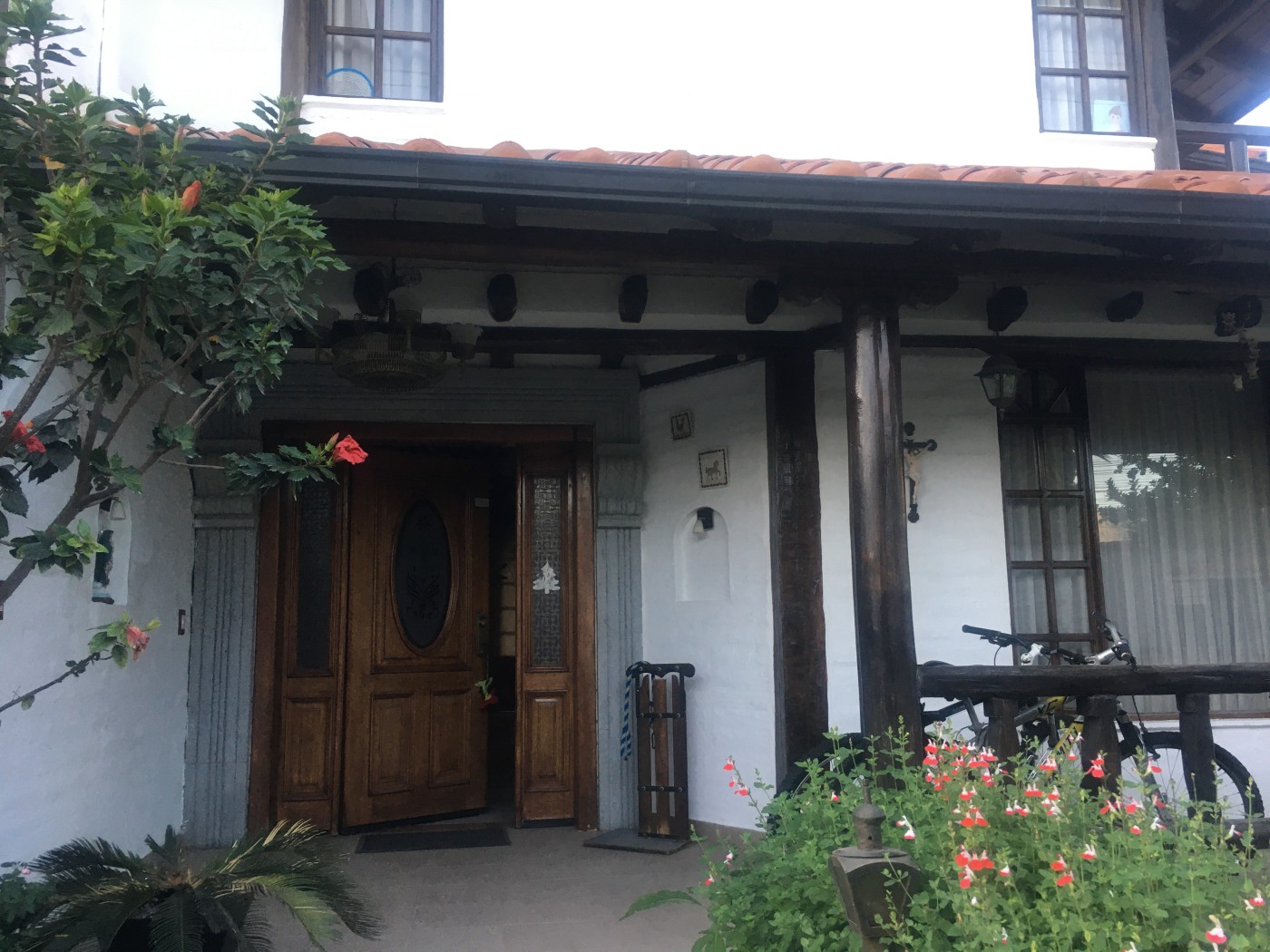 Lovely house spanish style, close to the Middle of the residential development Jardines de la Pampa, It is in front of the park with security staff. The house has two floors, !st floor with dinning room , nice kitchen, living room , and bathroom. 4 bedrooms each one with bathroom, living room upstairs. Beatiful garden around the house. Parking lot for 4 cars.