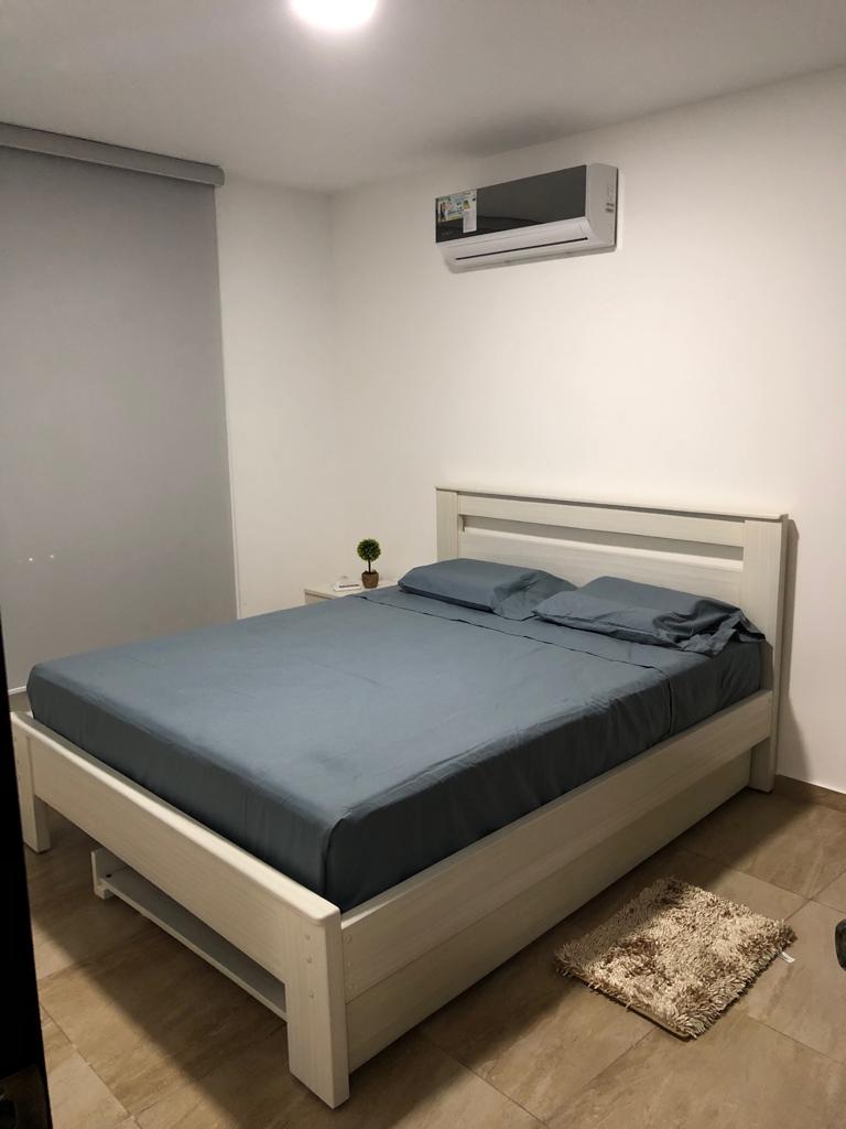 Departamento 2 dormitorios ubicado en el piso noveno con vista hacia mar bravo, con área de sala ,comedor , cocina y lavandería, balcón. cuarto master con closet , wifi , aires acondicionados y cortinas. en edificio con dos areas sociales, segundo piso con piscina, jacuzzi, gym, sala de condóminos con a/c , tv wifi . terraza con area de bbq , dos jacuzzis con vista panoramica.