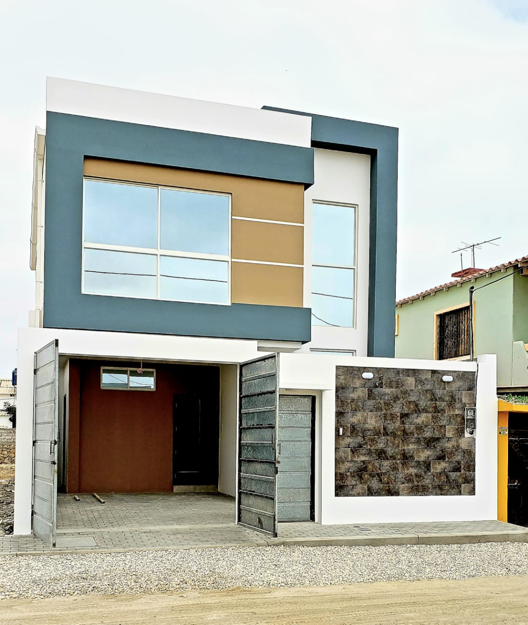 hermlosa casa de estreno , a pocas cuadras de la playa y via principal, acabados de primera, 3 dormitorios, 3 baños , cocina con isla, área de alacena, sala de estar, doble corredor, bodega parqueo, cisterna.