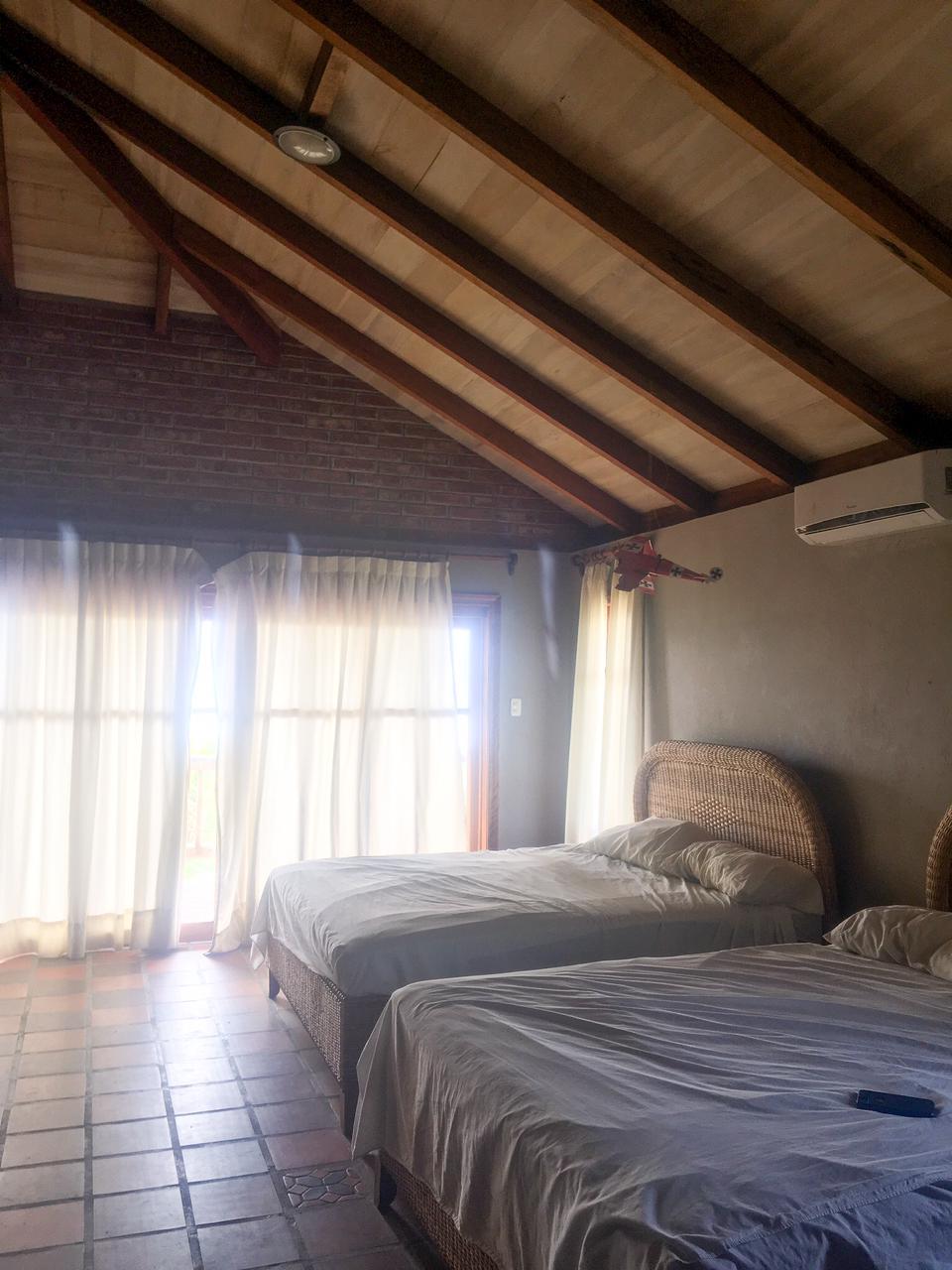 Base to build a bar at the back of the patio. It also has an area for BBQ. The house has beds and