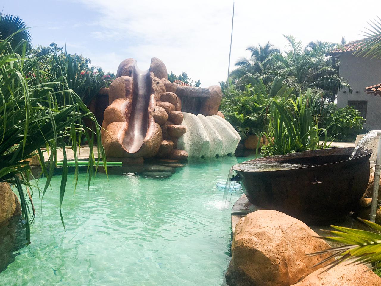 slide, a Jacuzzi-type pot that works on gas to heat the water at night. It has a garage, a large patio.