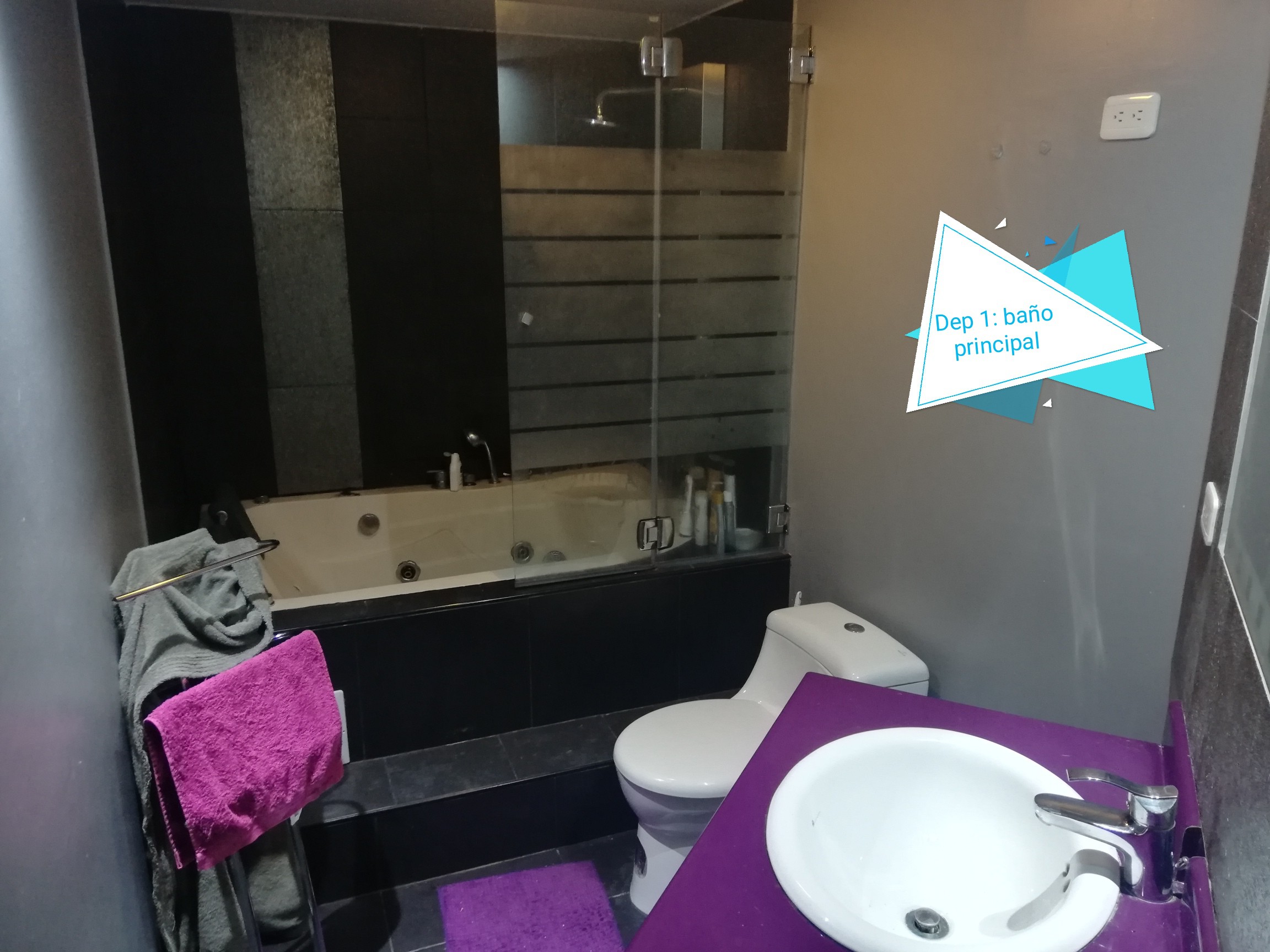 kitchen, social bathroom with shower, study, main room with walking closet, bathroom and Jacuzzi