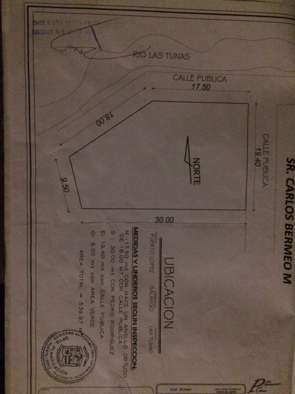 BEUTIFUL LAND VERY CLOSE TO THE BEACH LAS TUNAS, PERFECT LOCATION FOR MADE HOTEL OR