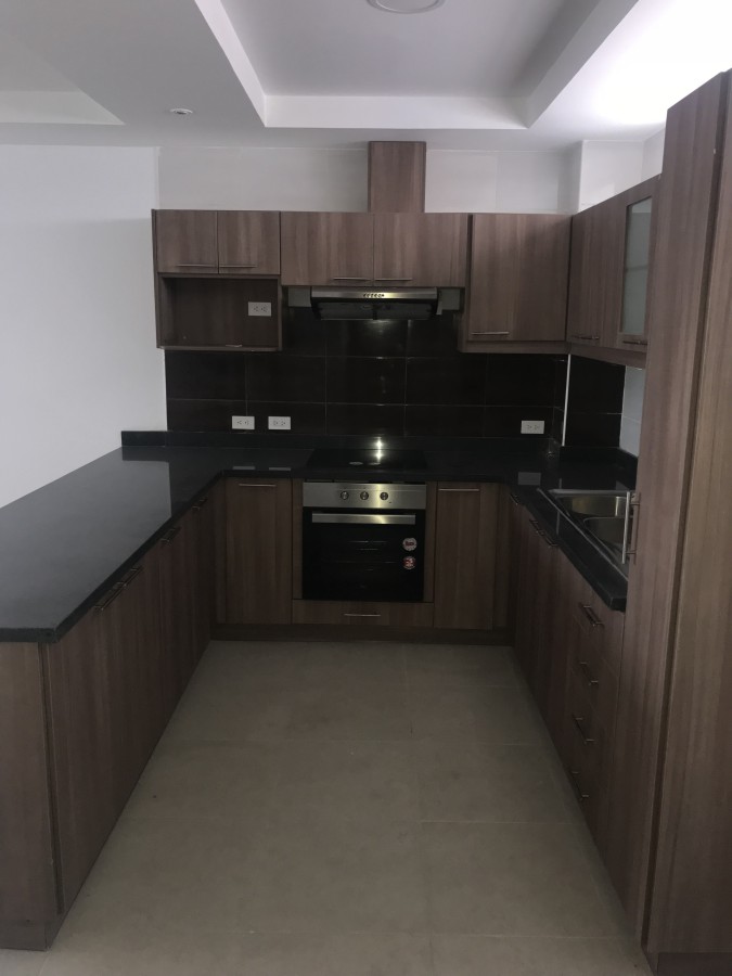 The apartment has an area of 95m2, it is in the fourth floor, it has a balcony (with ocean view), kitchen (with oven, exhaust fan, cooking top), laundry room (with electric water heater), 2 bedrooms and 2 full bathrooms, 3 Split A/C (in the living and the 2 bedrooms). It has 1 storage room and 1 parking slot.