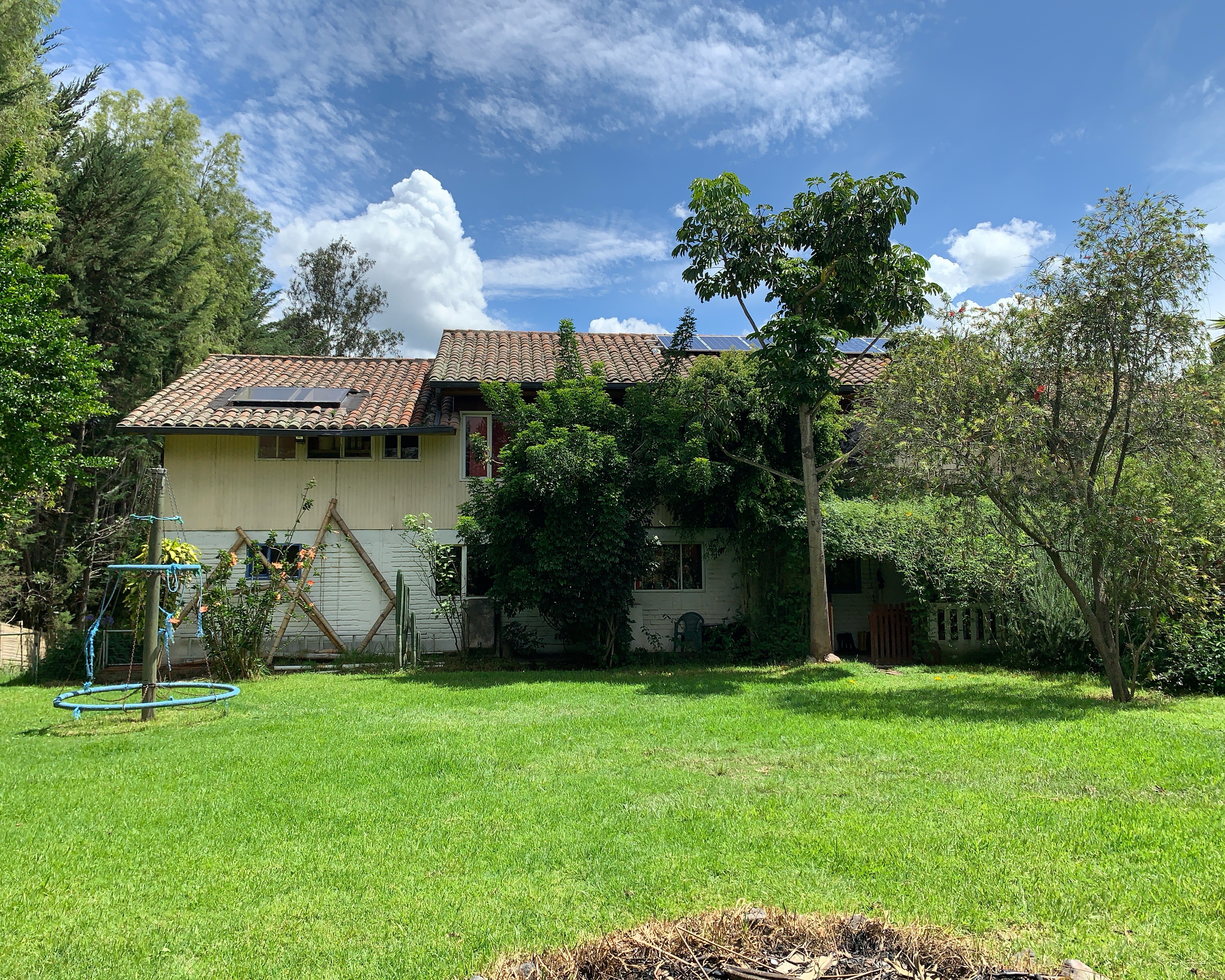 Property located in high-ranked area, in Tumbaco valley, between airport and Quito. 3200 m2 of land with an architect house of 400 m2. Many plants, surrounded by cypresses, 2 huge palmtrees, birds. Autonomy with solar plant and water well. The house has been designed and built by a chilean architect, fellow of the famous brazilian architect Oscar Niemeyer. The structure of the house is principally made of chanul wood (a very dense and resistent wood that is too expensive today to be used).