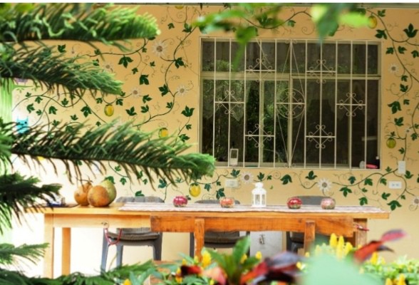 living room, garden.