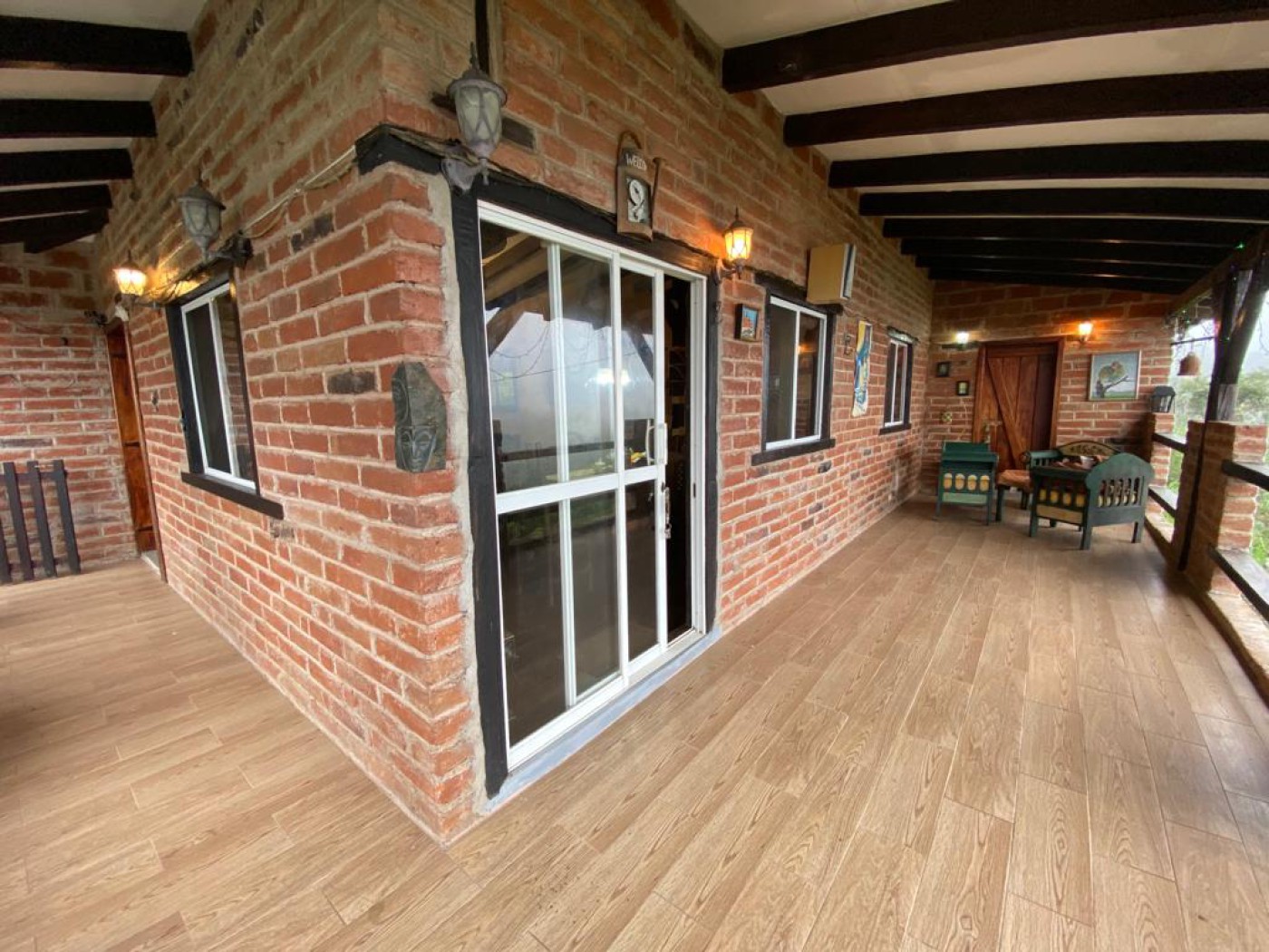 beautifull spain style house , made of wood, concret al bricks