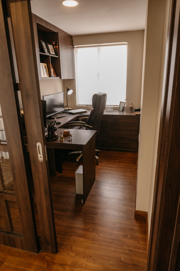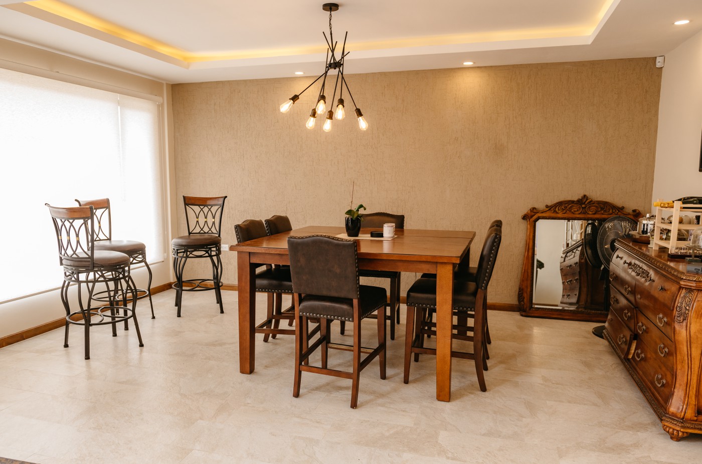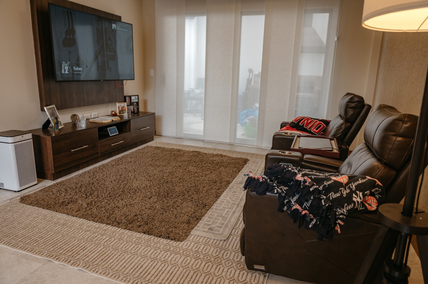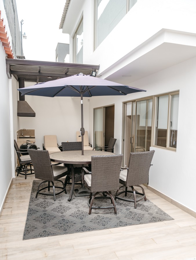 - TV, living, and dining areas with a semi-closed patio / barbecue area