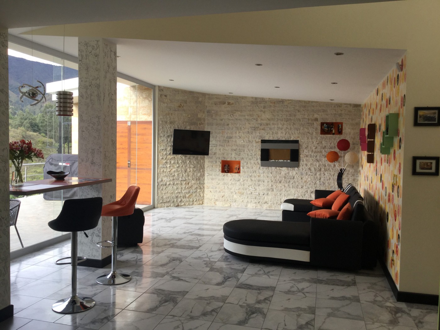 the mountain through large bay window,