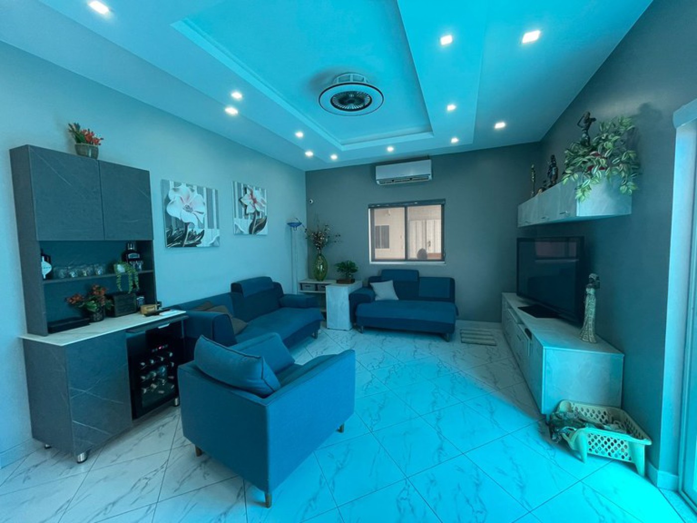 The living area is tastefully furnished with comfy seating for TV viewing and just relaxing.