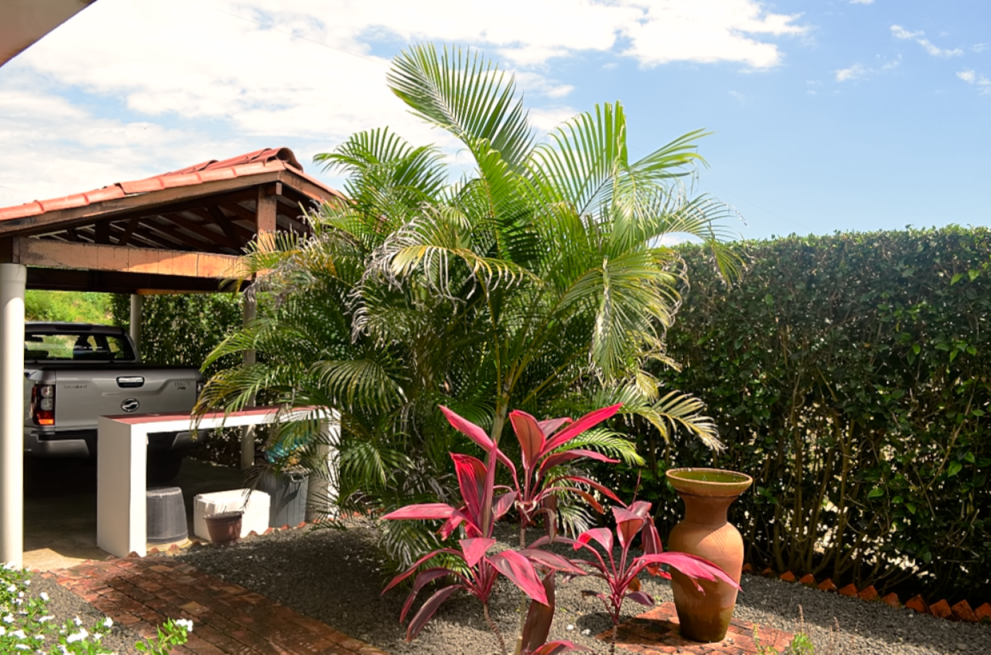 If the outdoors is where you enjoy spending most of your time, you can also spend an afternoon barbequing with friends or simply have some quiet reflection in the garden. The details in the landscaping beautifully compliments this home. The house is partially bordered by a magnificent hibiscus hedge and the meticulously chosen tropical plants throughout this property make you feel that you are in a peaceful and secluded location. There is an 80 . bodega next to the house for all of your outdoor storage needs and additional space for larger items in the covered carport that is attached to the West-side of the house.