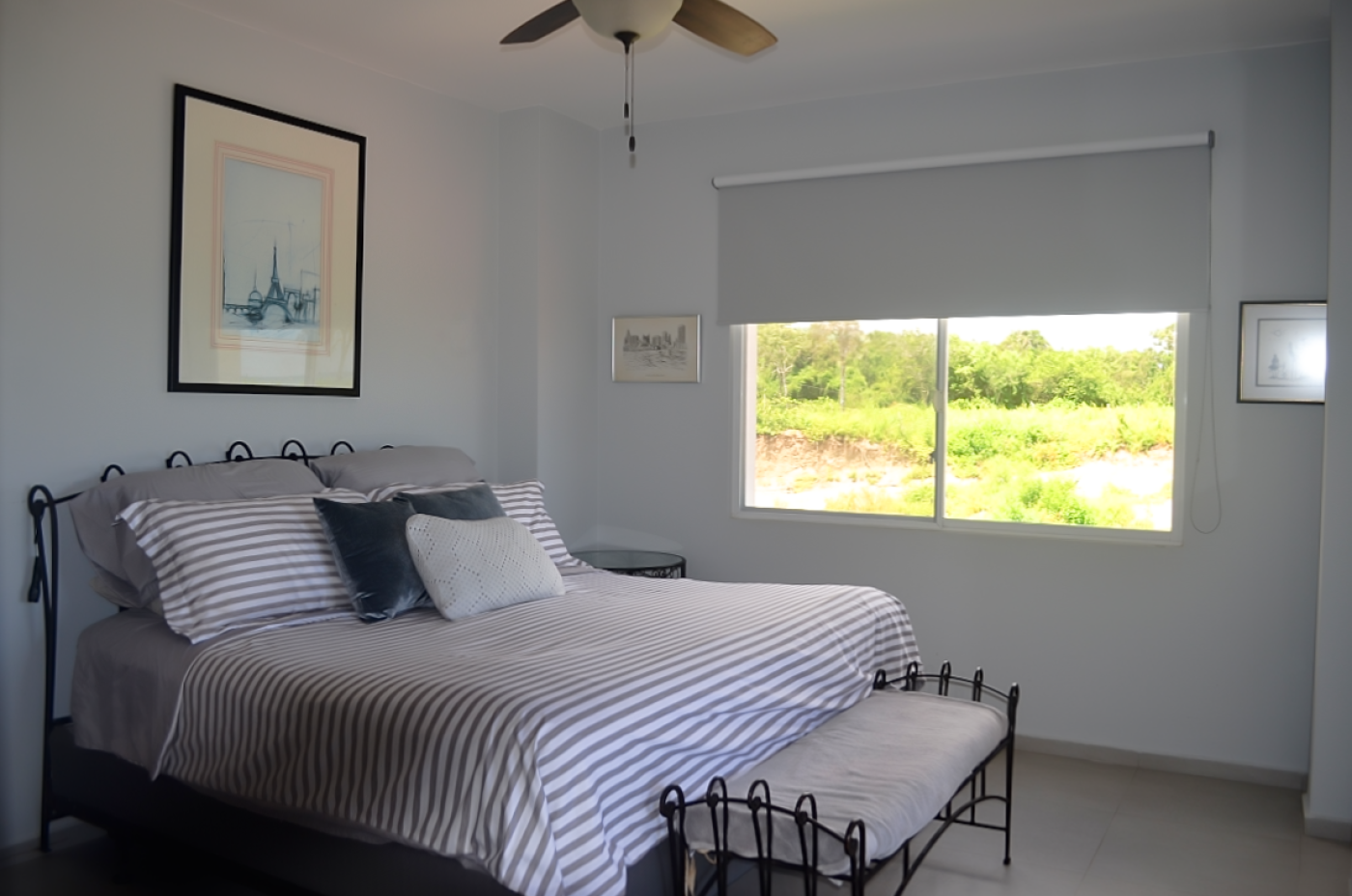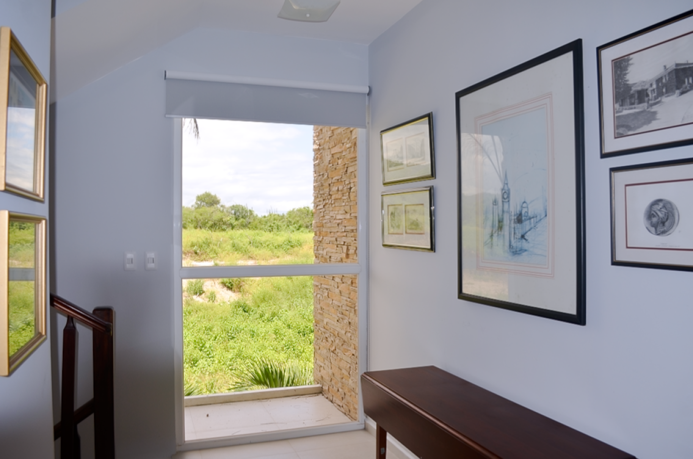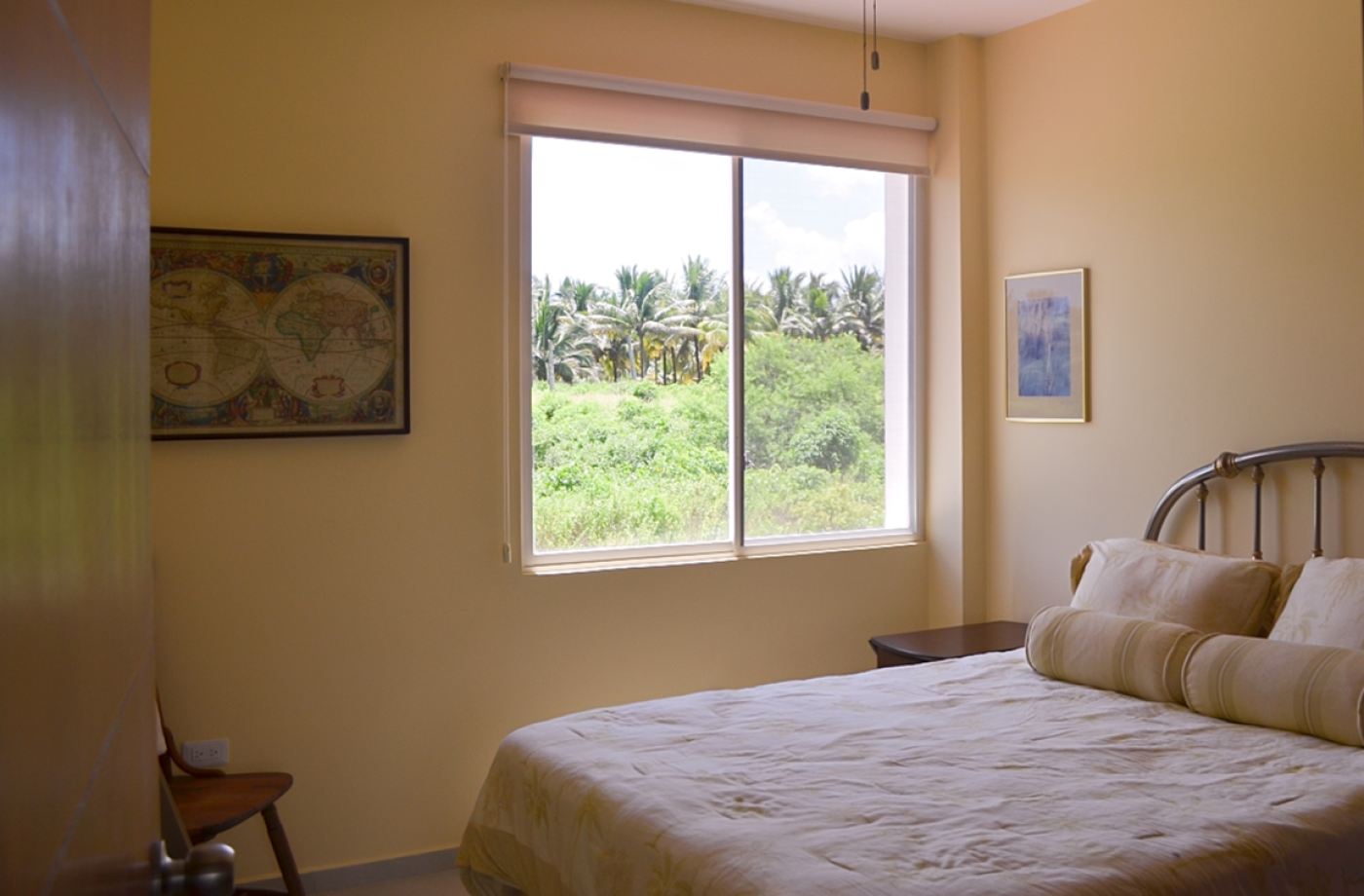 The second floor has a bright and spacious landing that leads to the 3 bedrooms and the main 3-piece bathroom. The West-facing master bedroom has a king-size bed with its own private patio overlooking the ocean. This light and airy space also includes an ensuite bathroom and boasts floor-to-ceiling built-in closets for plenty of storage. The second and third bedrooms also have custom floor-to-ceiling built-in custom closets. The guest bedroom has a beautiful queen-sized bed and the third bedroom is currently being used as a combined office and workout space. The staircase that leads you from the main floor to the second floor and all the way to the terrace on the third floor is wrapped in an exquisite hand-crafted wooden railing. Once you reach the top terrace through the 6-foot patio doors, you will be amazed at the magnificent 360° view of one of the most beautiful coastal landscapes in Ecuador. This is where you can observe the glorious mountain range to the East or gaze West at the Pacific Ocean just by turning your head. This large terrace is perfect for entertaining guests or simply enjoying an early morning cup of coffee while listening to the waves.