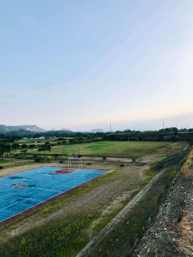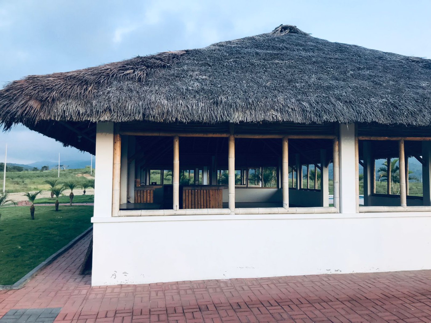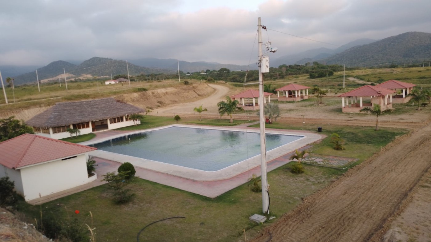 La Urbanizacion tiene canchas, piscina, bordillos, luz, agua, porton de entrada, guardiania, areas