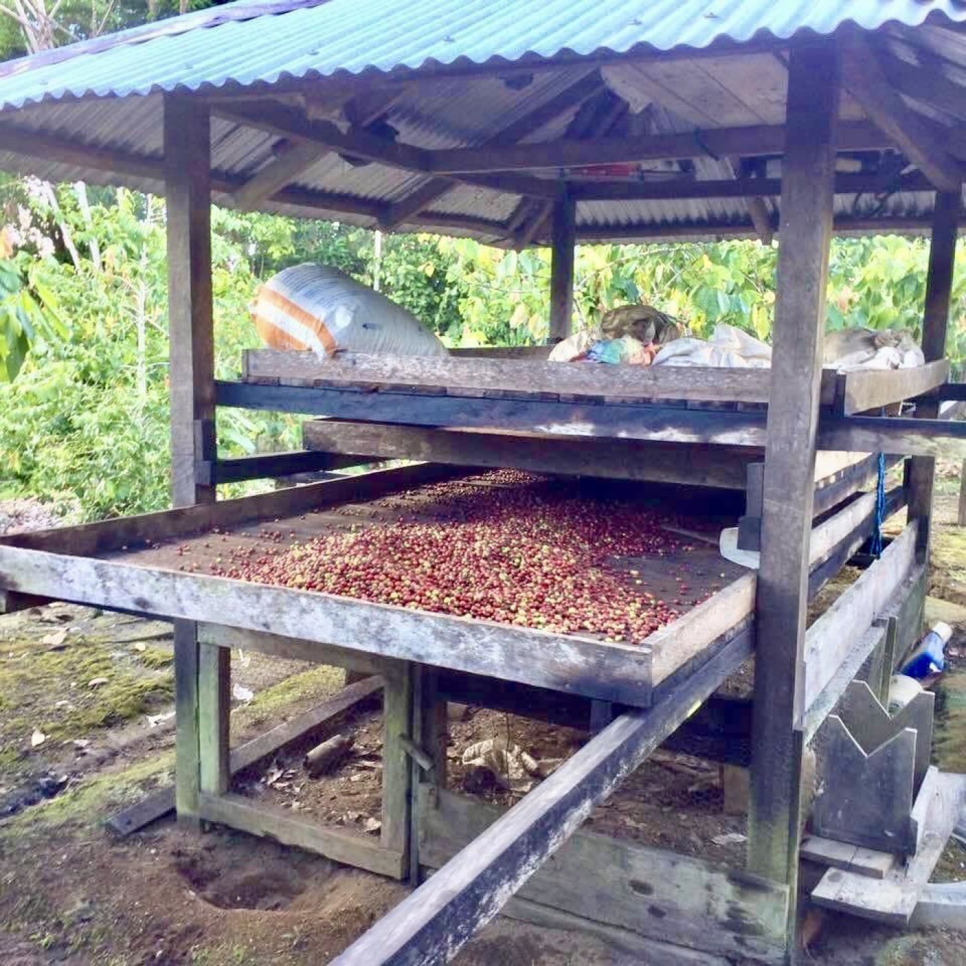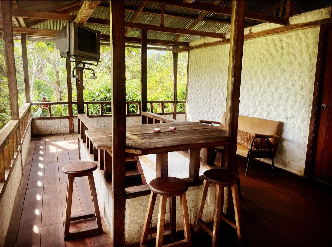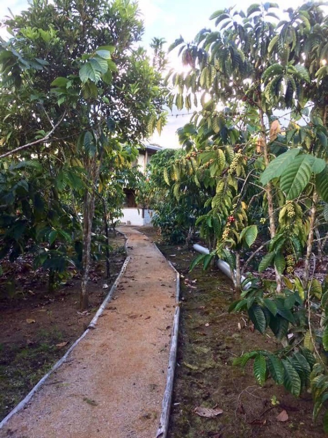 finca 2.6 hectáreas aproximadamente. Ubicada a 100 mts del río Colonso y a 800 metros de la universidad Ikiam,con río pequeño dentro de la propiedad, casa mixta de dos plantas, tres dormitorios,baño, mini departamento para personal de servicio, asadero, tres galpones para pollos, secadora manual de semillas, energía eléctrica pública, teléfono, 1800 plantas de cacao fino y de aroma en producción, 600 plantas de café robusta en producción y 500 de dos años, 800 plantas de Guayusa en producción, árboles frutales.