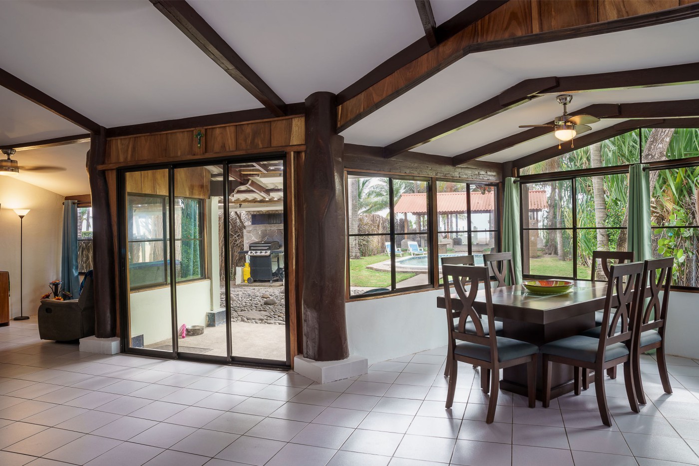 Windows feature screens and sliding doors off the great room for ventilation and comfort.