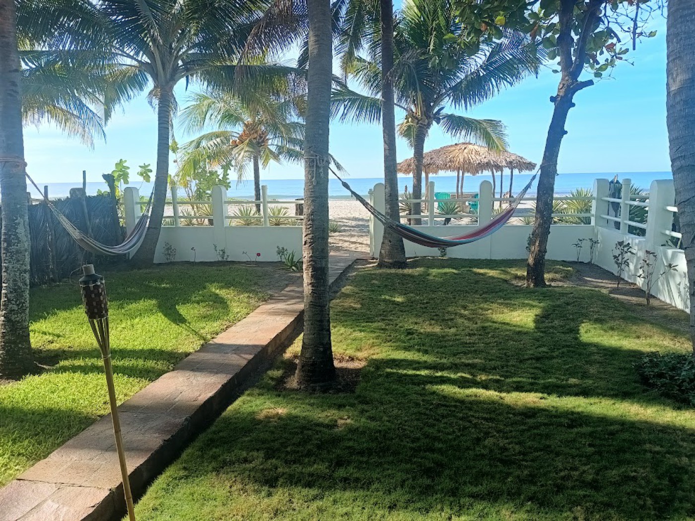 This beachfront property is private and very quiet without vendors and panhandlers on the beach.