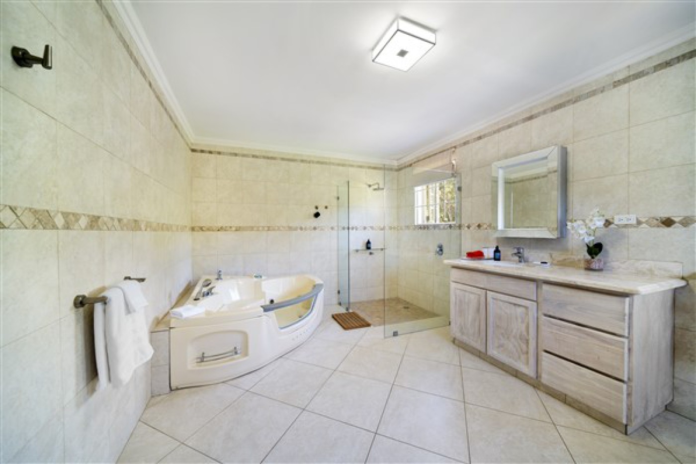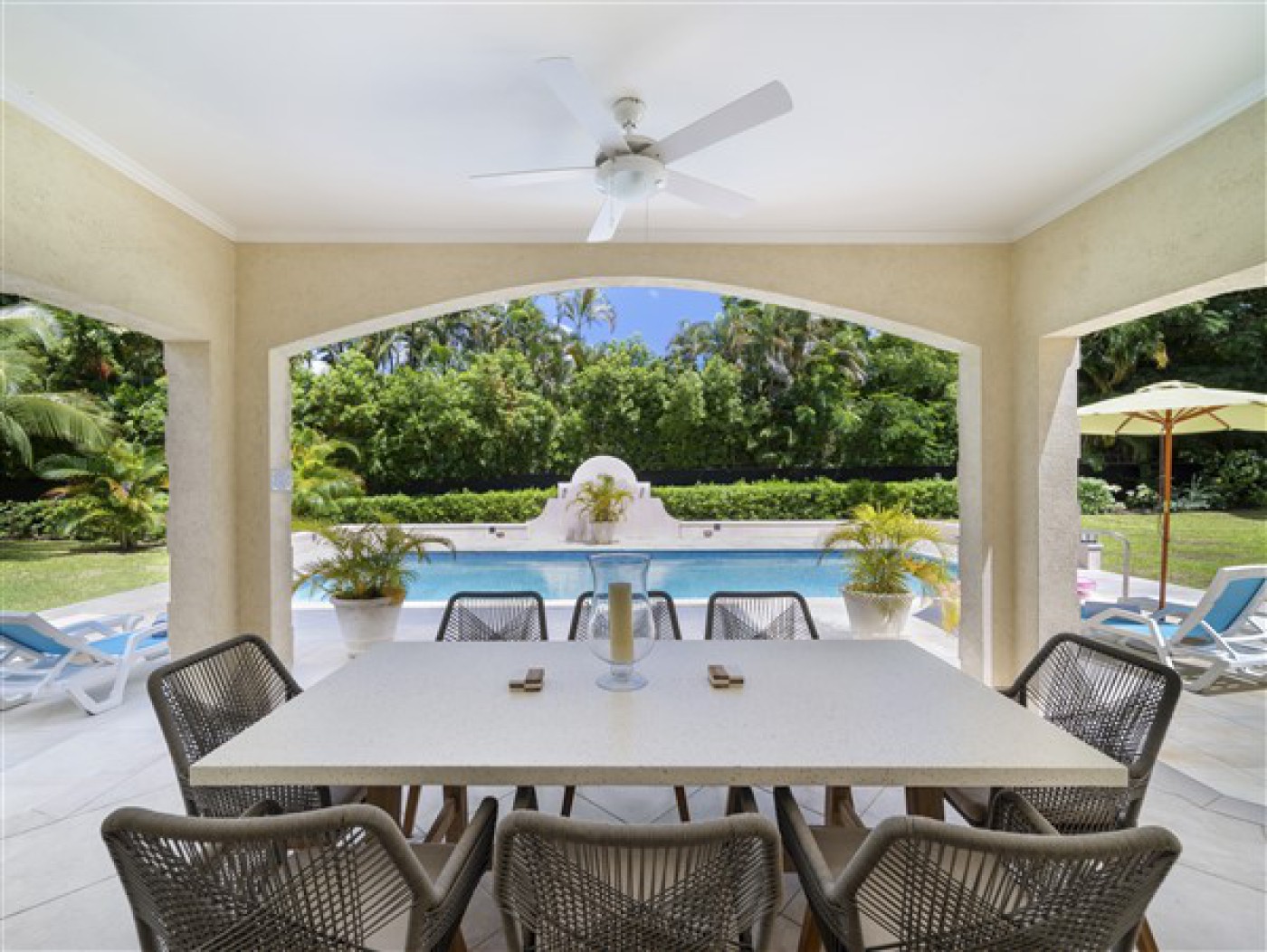 trees on 1 acre of well-matured grounds in the Sandy Lane Estate. The Villa is a 4-bedroom 5-