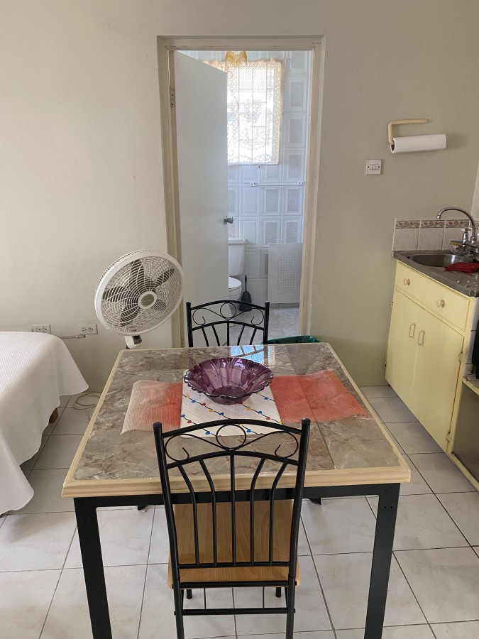 This Studio apartment provides a home away from home vibe. Its priced at USD$70 per night and is located on the west coast 7 minutes away from Holetown St James which is a popular tourist spot in Barbados. If you’re looking for some place to stay that is affordable on the bus route and on the west coast and in a very central location, give us a call today.