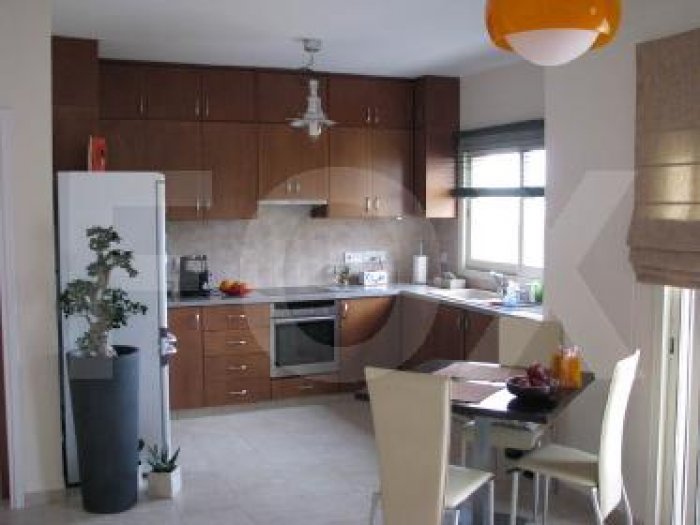 A 3 bedroom penthouse situated in a quiet neighbourhood of Agios Athanasiosclose to parkschoolsgrocerie stores banks and all amenities. Is on the top floor of two floor of a year old plan living dining and kitchen balconies two of them are joined with bedrooms and the other one with the living area with panoramic views of living room has lowered ceiling with soffit kitchen has custom made cabinets granite work tops and large closet spaces in all is also a covered parking place and a storage :