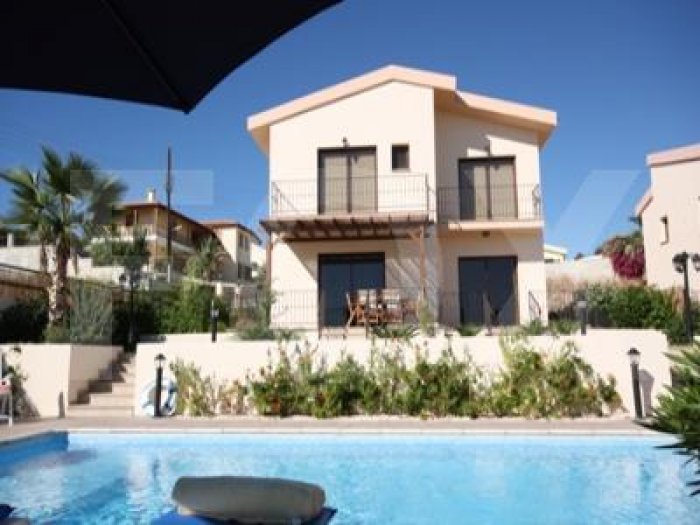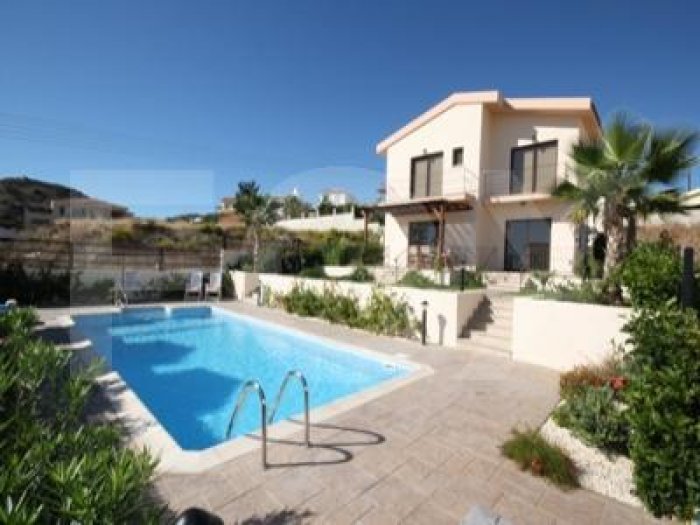 The brand new detached 3 bedroom villa is located at a very prime location with fantastic panoramic sea view .The villa is about 160 sq. m. and the plot of land of the Villa is more than 500 . The villa is consisting of lounge and dining room a separate kitchen a utility room and a visitors . on the ground floor staircase leading to the first floor which is consisting of three bedrooms with an en suite bathroom in the main bedroom a bathroom and two bedrooms with covered verandas space for a noncovered garage on the one side with a wooden pergola another wooden pergola at the rear side of the villa facing the garden and finished landscaped garden and Irrigation system with automatic programming control The swimming pool of the villa is 4m X 9m rectangular shape with walk in steps. Also Kitchen cabinets & wardrobes airconditioning split unit (hot & cold) in all rooms and the white goods of the kitchen are included in the price. Satellite free to air channels internet access wireless : icl vat