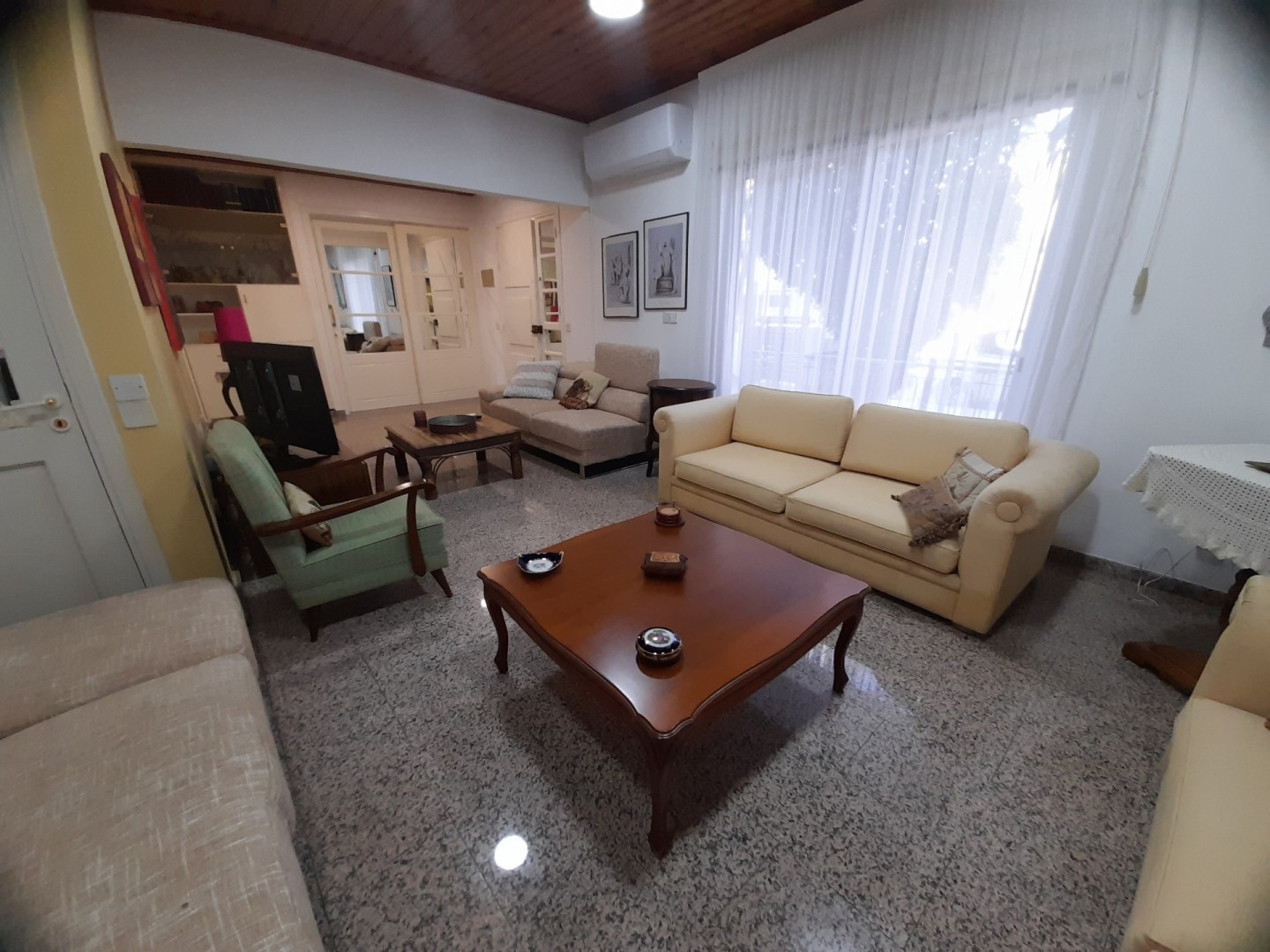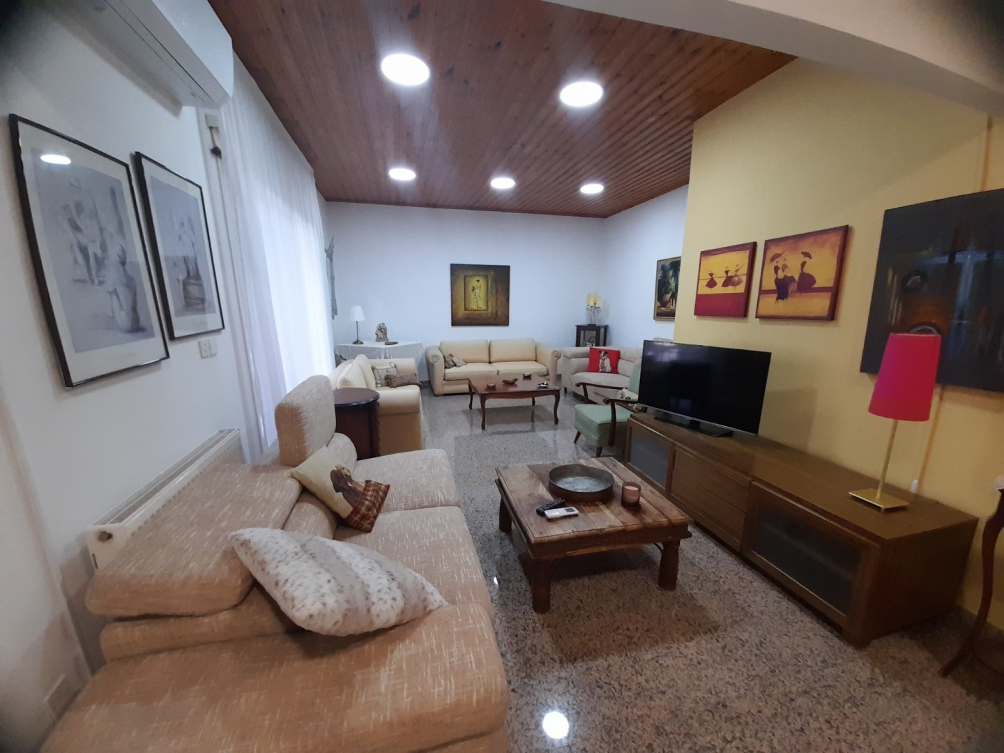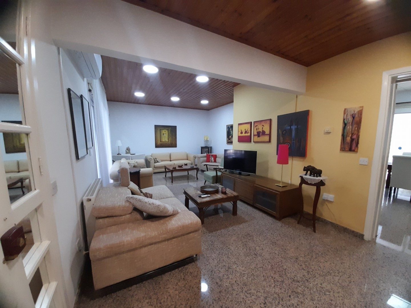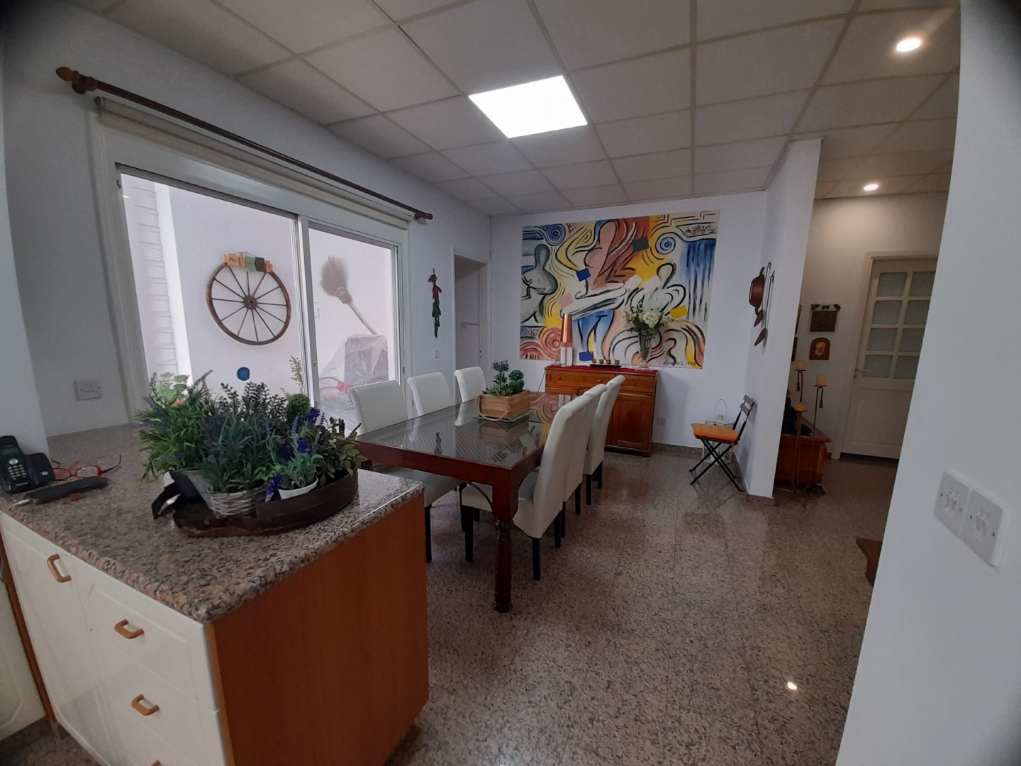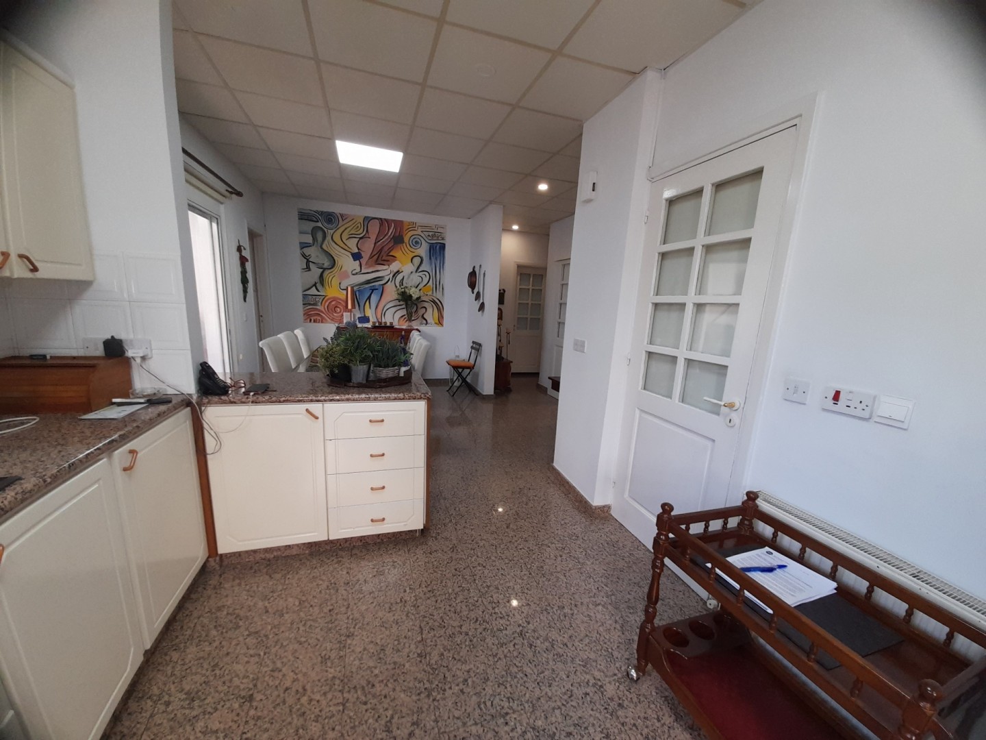 Charming two bedroom ground floor house available fully furnished near the town centre. Spacious inside area with large sitting room and separate kitchen with dining area. The kitchen has all electricals including washing machine dishwasher and fridge freezer and features a pantry or walk in storage room. There is an en suite shower in the master bedroom and family bathroom. The residence has central heating with diesel air condition units and a thermitron unit in the bathroom. Located near all amenities and just a 3 minute walk to Makarios Avenue. The seafront is 15 minutes walking distance. Please call for further information and a viewing.