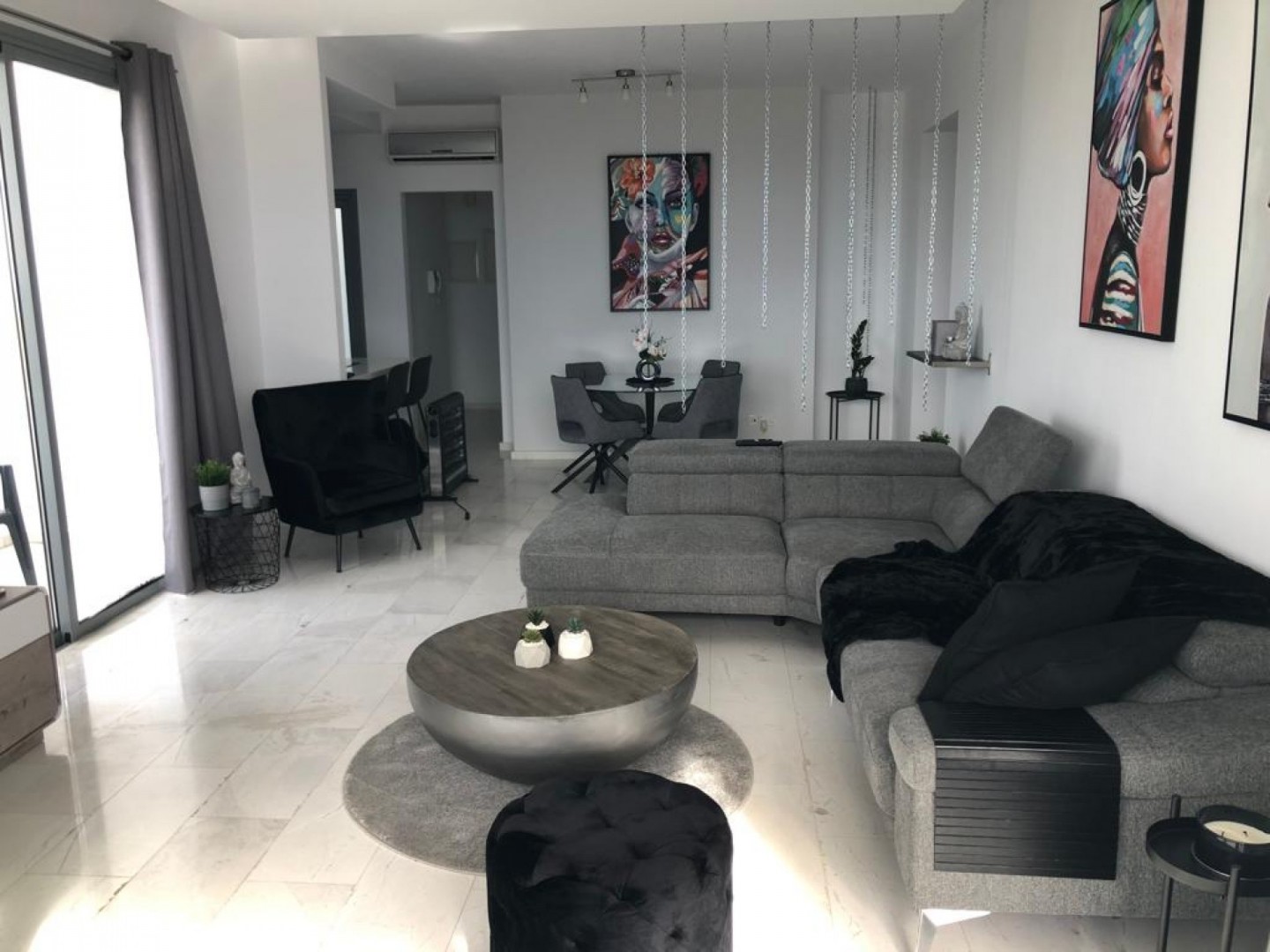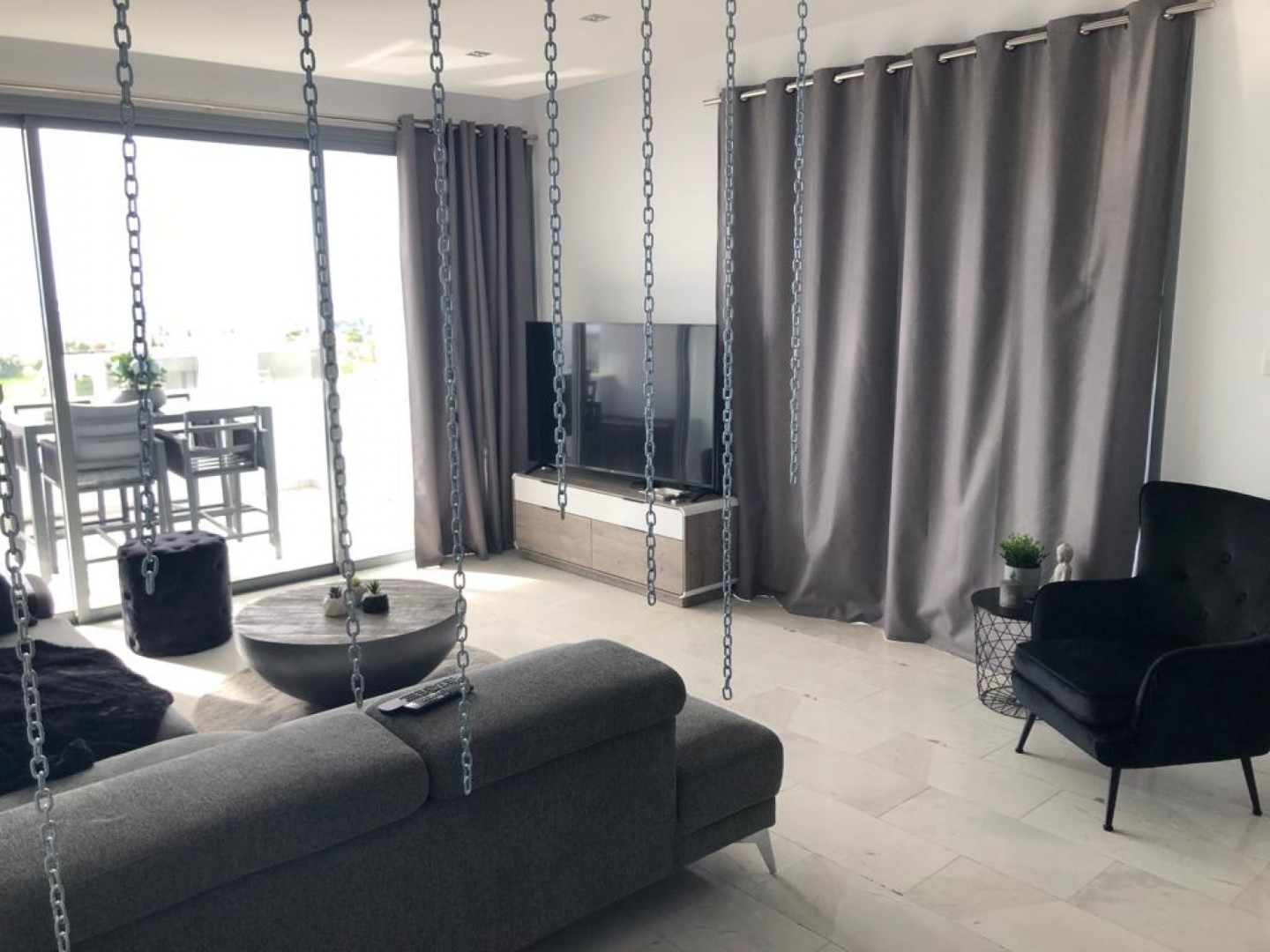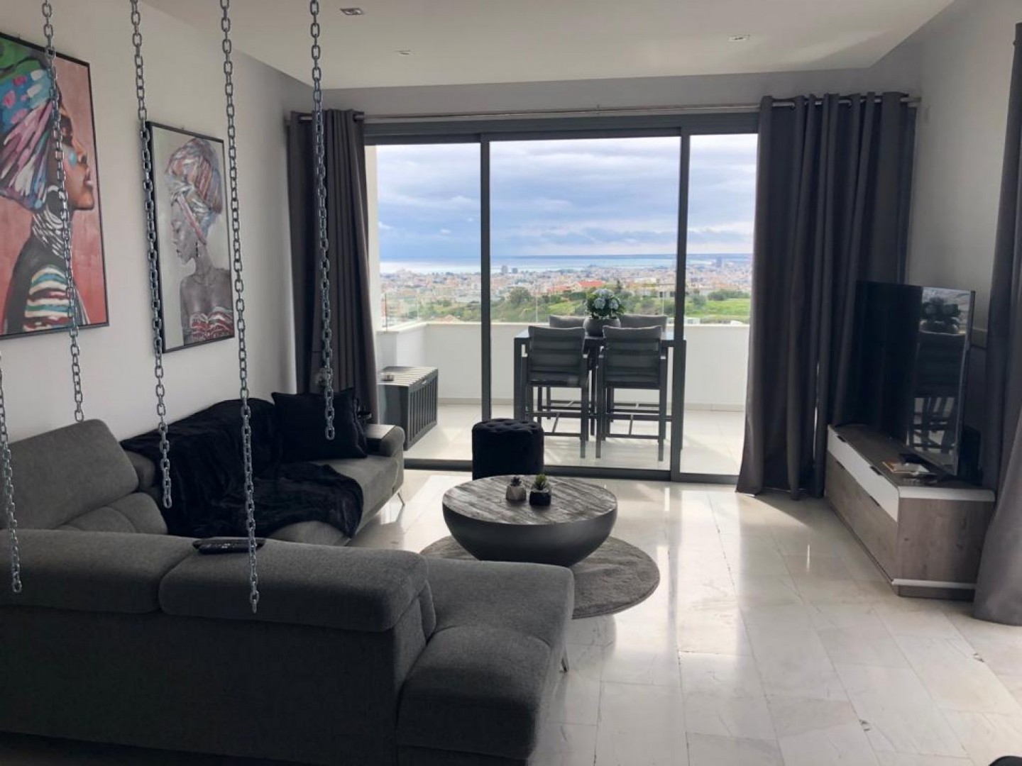 Luxury apartment in the best area of Panthea with large veranda offering panoramic views of the sea.The apartment consists of two bedrooms with two toilet and open plan kitchen with all electrical appliances equipped.Air condition systems installed throughout covered parking and a storage room.