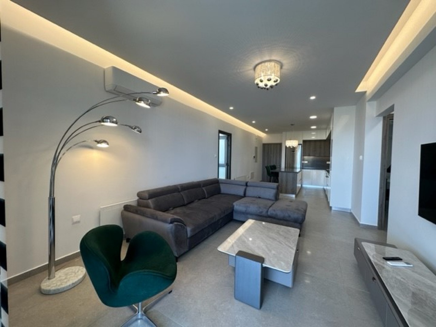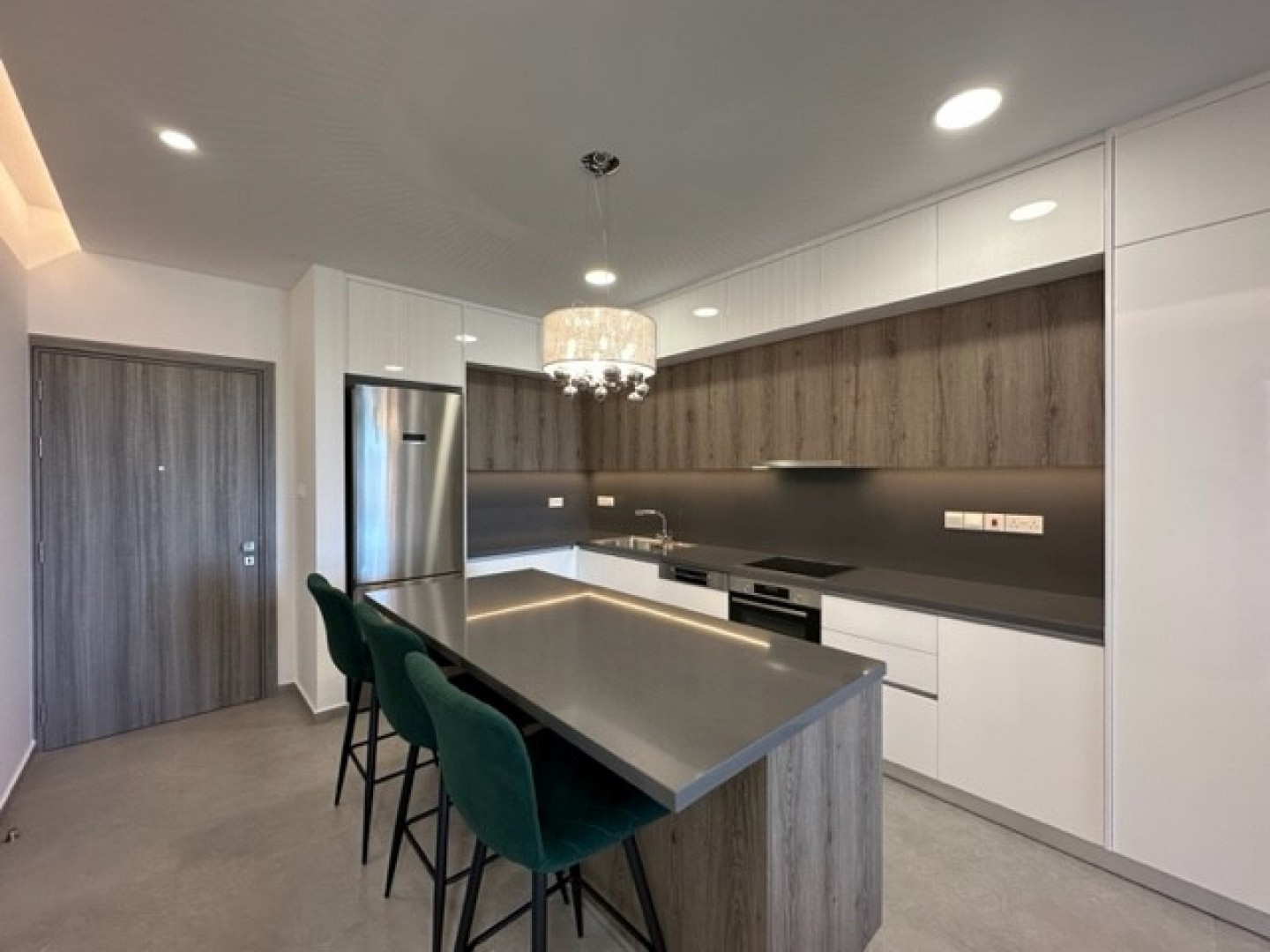 A fabulous 2 bedroom and 2 bathroom top floor apartment opposite a green area with outstanding views in Kato Polemidia.No expense has been spared in making this fully furnished apartment the perfect home. Walking distance to all amenities and by car very easy access to all arteries of Limassol.Fully equipped kitchen with island bar and granite surfaces double fridge freezer dishwasher utility area with washing machine and tumble dryer.2 bedrooms with balconies wall to wall fitted sliding wardrobes.Fully a/c central heated double glazed windows with fly screens and blinds Covered parking and storage room security code entry and remote for parking access and for the main entry to the apartment.Can be offered furnished or unfurnished with electrical appliances
