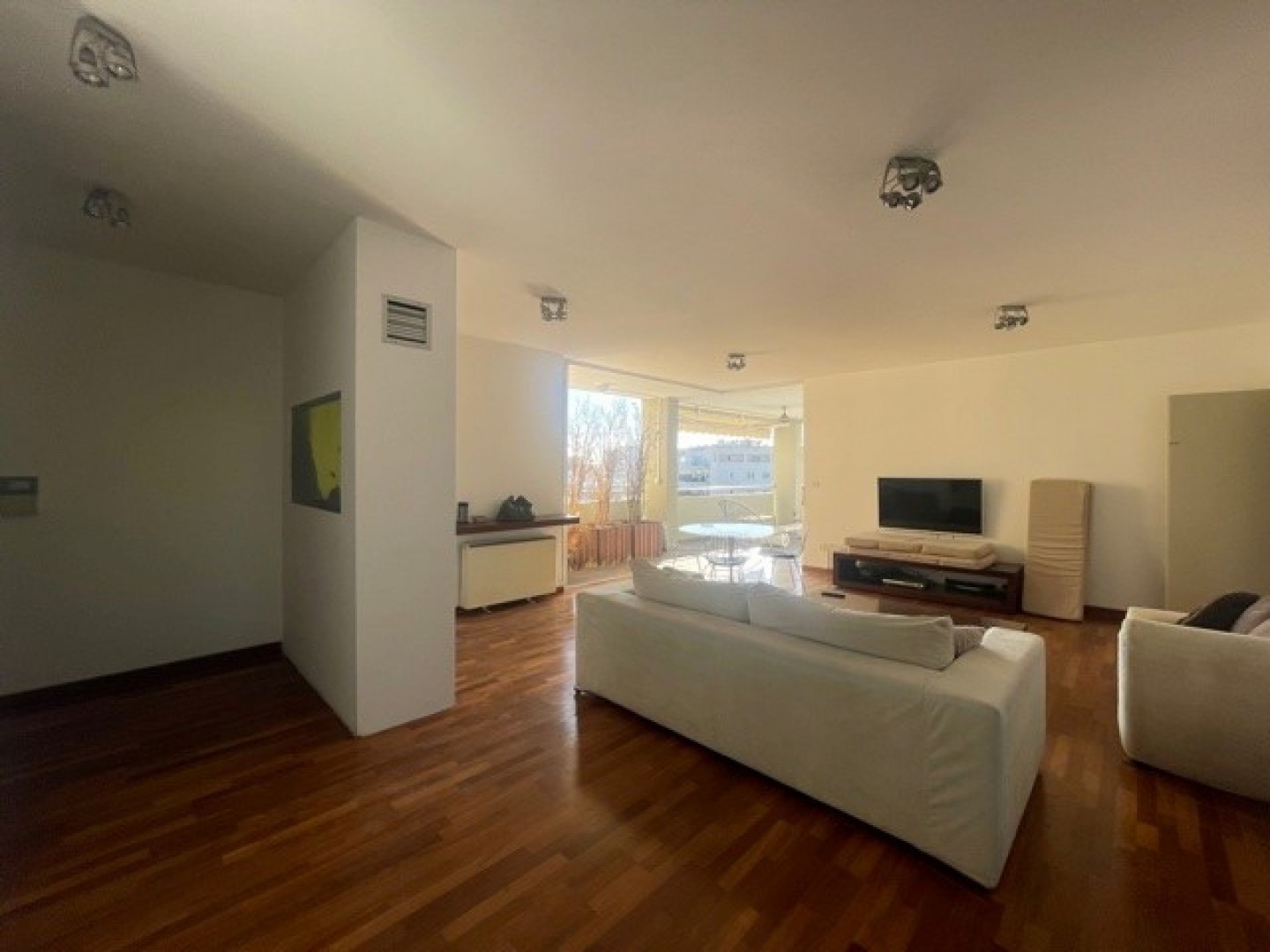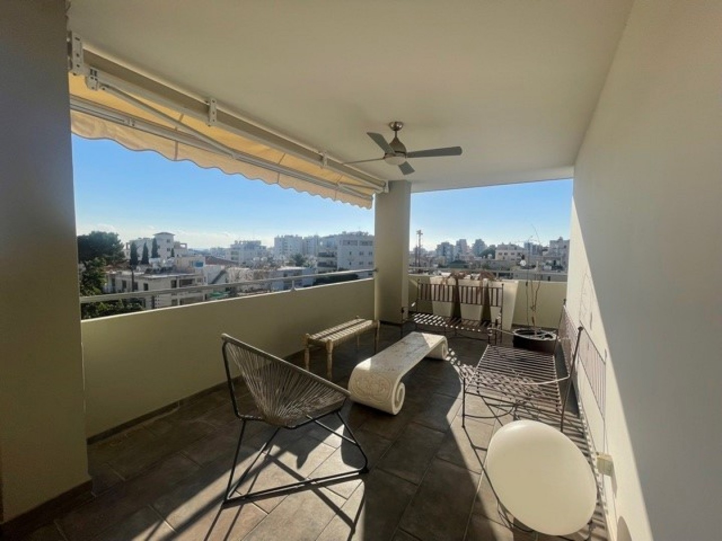 A beautiful well appointed 3 bedroom very spacious and bright apartment in the sought after location of Agia Zoni walking distance to all amenities and in a quiet cul De sac.Solid wooden parquet flooring entrance hall guest wc large sitting/lounge/dining area with high patio doors slide in wall onto covered veranda.Sliding feature door to separate fully equipped kitchen which has two way access to the dining area.Master bedroom en suite main bathroom.Fully central heated and a/c throughout vered parking and storage area.