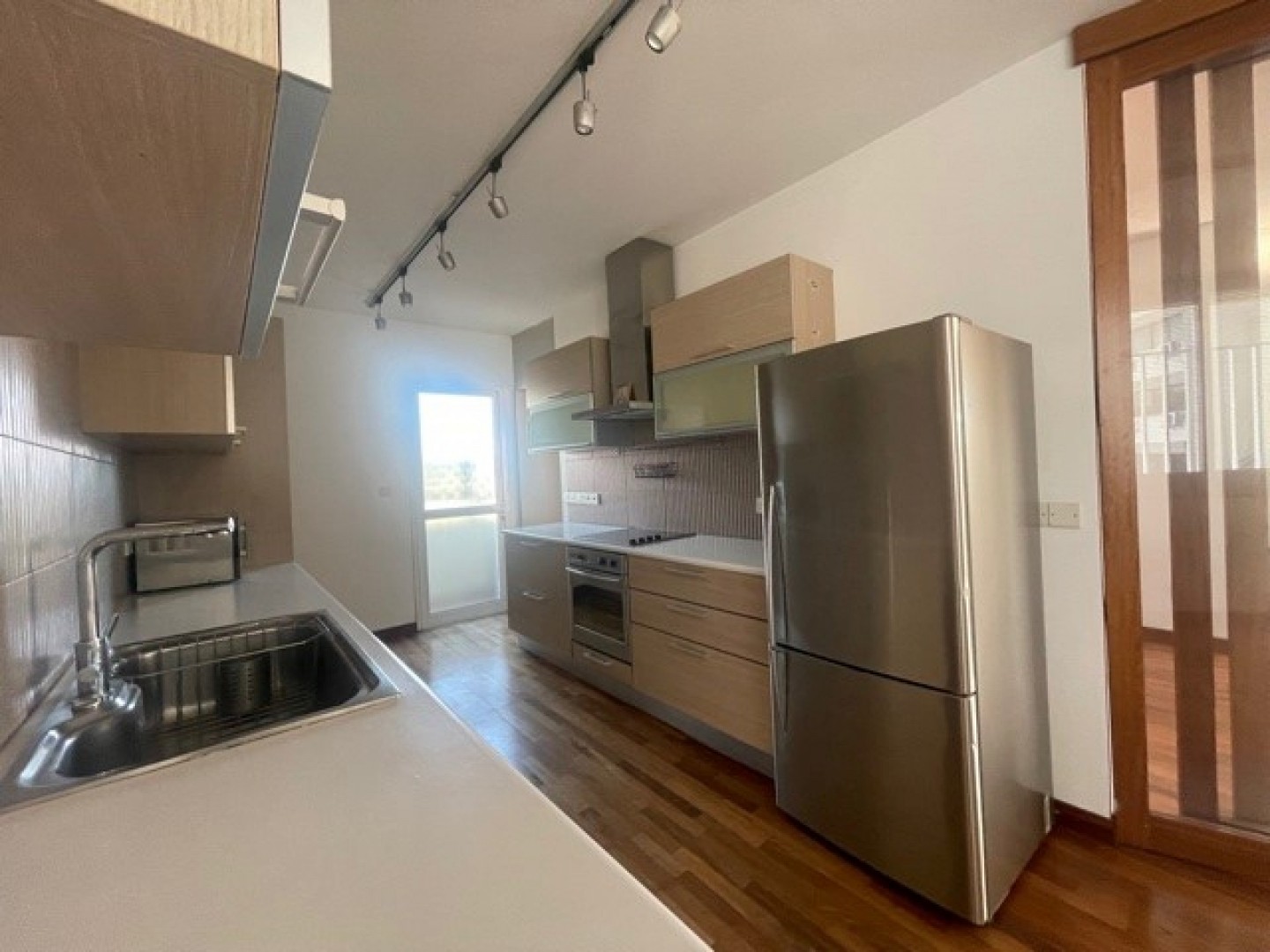 A beautiful well appointed 3 bedroom very spacious and bright apartment in the sought after location of Agia Zoni walking distance to all amenities and in a quiet cul De sac.Solid wooden parquet flooring entrance hall guest wc large sitting/lounge/dining area with high patio doors slide in wall onto covered veranda.Sliding feature door to s...