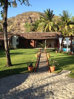 The main house and the apartment are divided by the swimming pool and a pergola. The property has a 10 foot brick fence all around. The beach is a few steps away from the main gate and a terrific view of the montain to the back of the property.