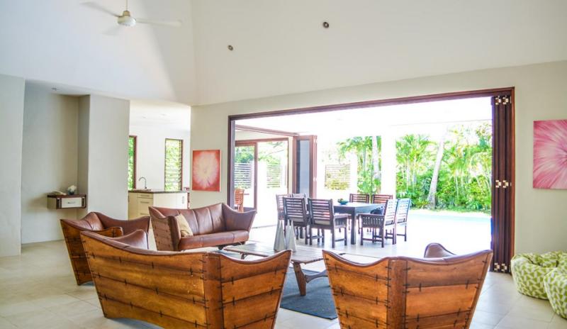 bathrooms. Large lounge furnished with Palm wood furniture,