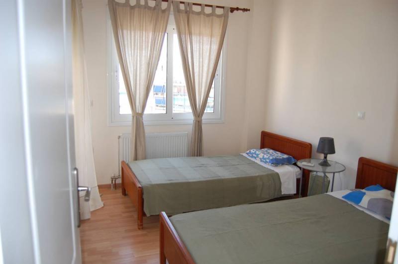 bedrooms,large sitting room,kitchen,one bathroom,w.c.,t.v.,a/c,2 large terrace,washing maschine,iron,internet connection.Also