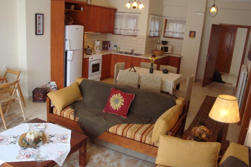 A lot of interested point are not far from the apartments area, like The monastery was founded on this site in the 17th century with rich collections and history , other small villages (Marathokefalas cave and Boybes oldest olive tree ) and near you will find small shops, cafe and tavernas with local traditional products.