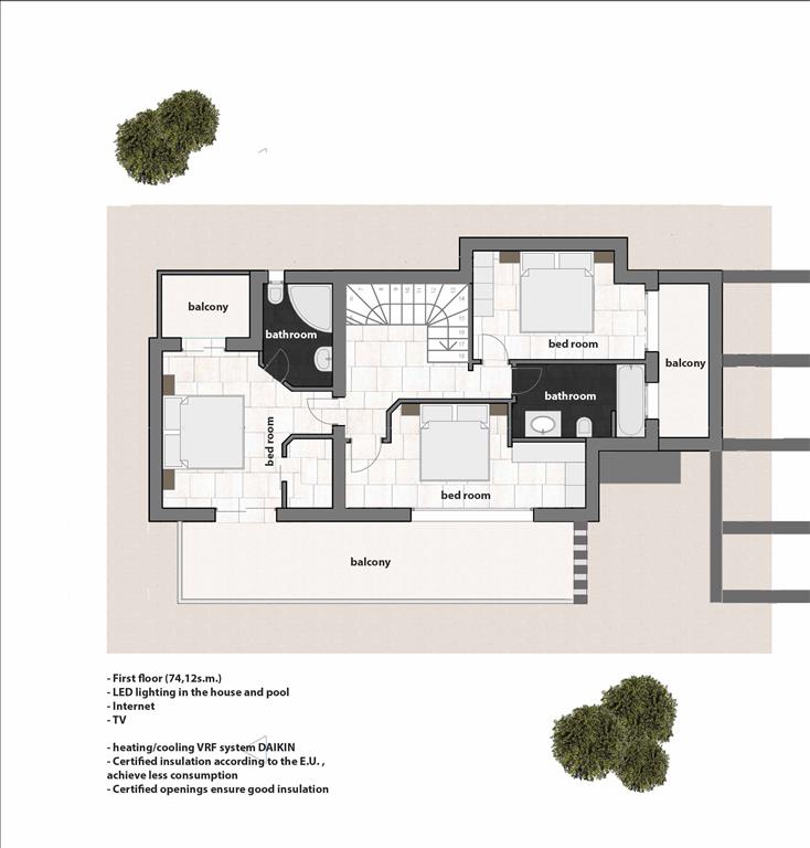 For sale 2storey villa of 184 in Kassandra Chalkidiki. The first floor consists of one bedroom living room with kitchen one shower WC one storeroom. The second floor consists of 3 bedrooms 2 bathrooms. Villa has front layout has a wonderfull mountain view forest view also contains security doors fireplace airconditioner swimming pool garden grass barbecue elevator heating alarm system storeroom. There are offered two Villas of area 184 . each in Kassandra Peninsula. The villas are under construction.