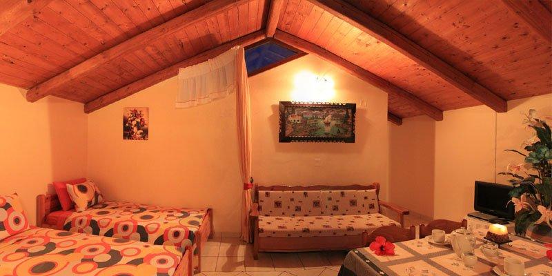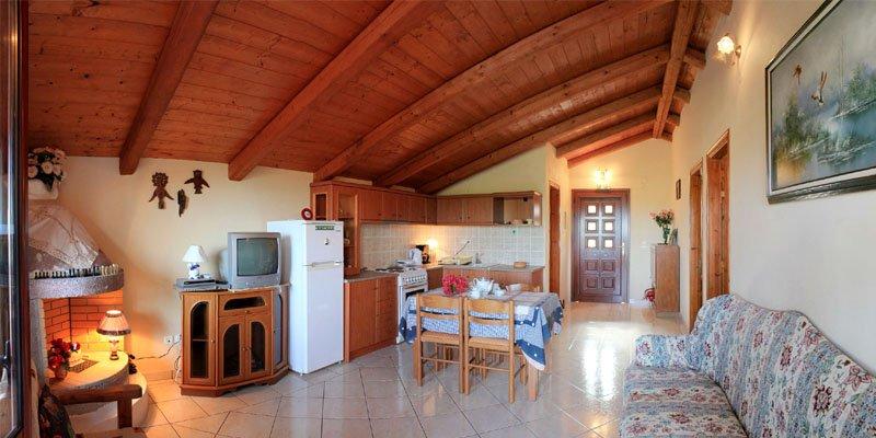 Arazzo contains luxury studios and apartments. They are self contained, lighty and airy including full size fridges and cookers in the apartments, and 2 ring hobs in the studios. All have air-conditioning and furnished balconies on 2 sides which offer spectacular panoramic view across the Ionian Sea to the Peloponnese and Mount Skopos. The property is situated within a beautiful olive grove.