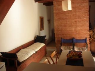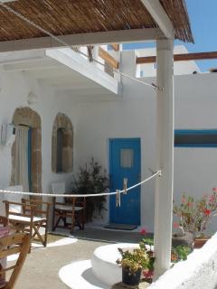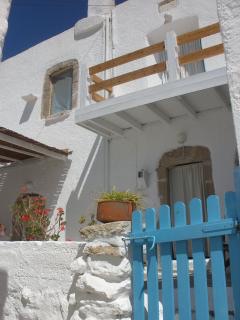 Typical dodecanesian stone house build in early 1900 completely restored and decorated in bright Mediterranean colour with some traditional and antique Greek furniture. The house is well situated on the low hill of the quiet and picturesque village of Megalo Horio and has from the terrace a commanding view of the old village and the near Bay of Eristou where you find sandy beach.All services are within 100 mt radius of the house. Well equipped gives a confortable living for up to four people.