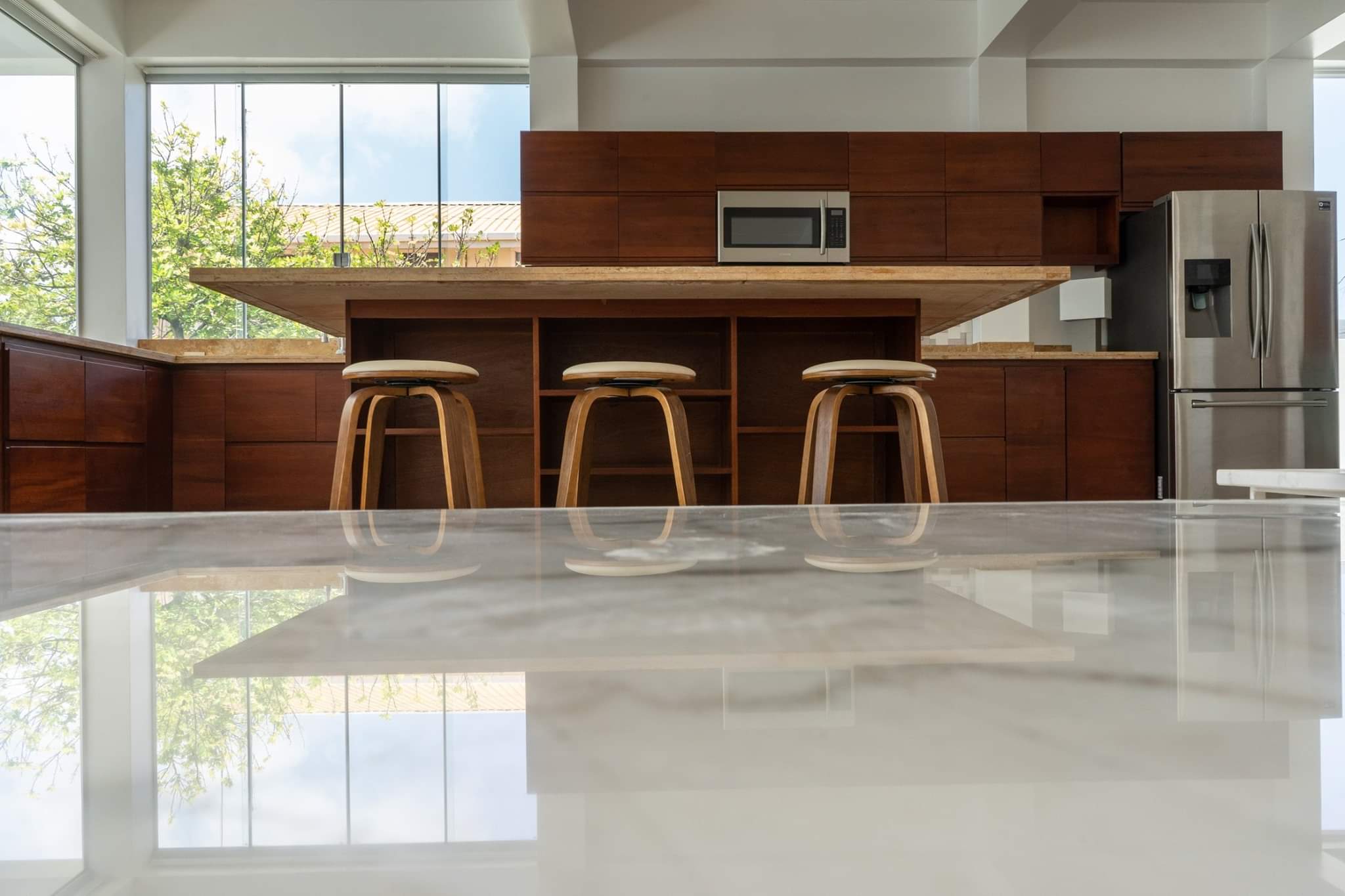 Residential modern family house with swimming pool highly modern security equipped with back up generator etc and sit on two floors comprising of four glass front bedrooms with balconies, open spacious kitchen outdoor patio and dining and living area that open out into the lawn. Fully furnished and available for immediate occupancy for an executive expat or diplomatic family seeking secure modern and spacious accommodation in Georgetown Guyana. Aspiring serious