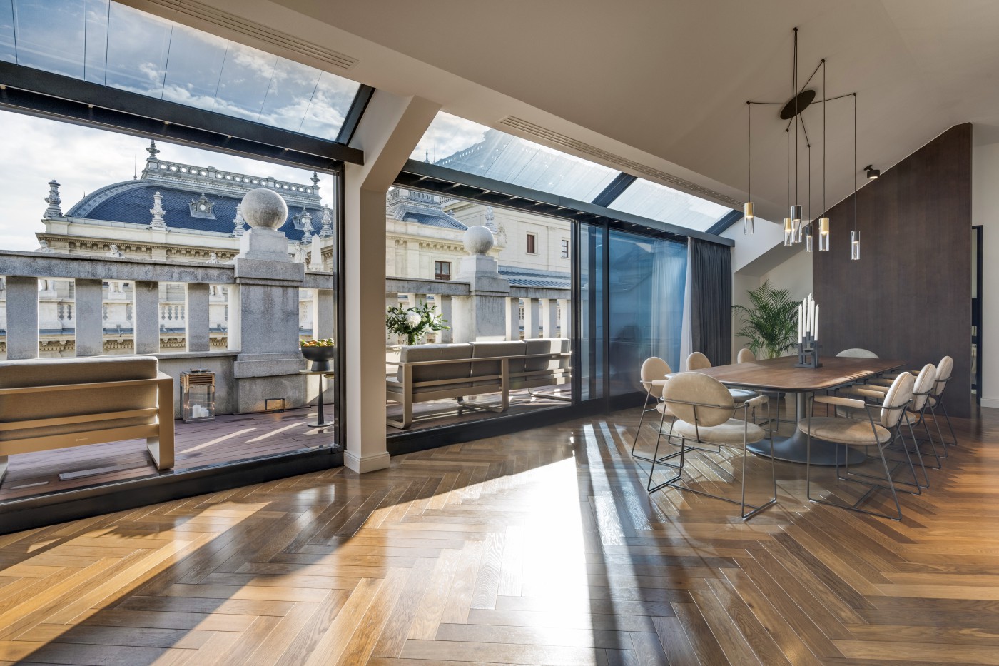 Breathtaking view over the building of the newly renovated Opera, the romantic rooftops of city center, the