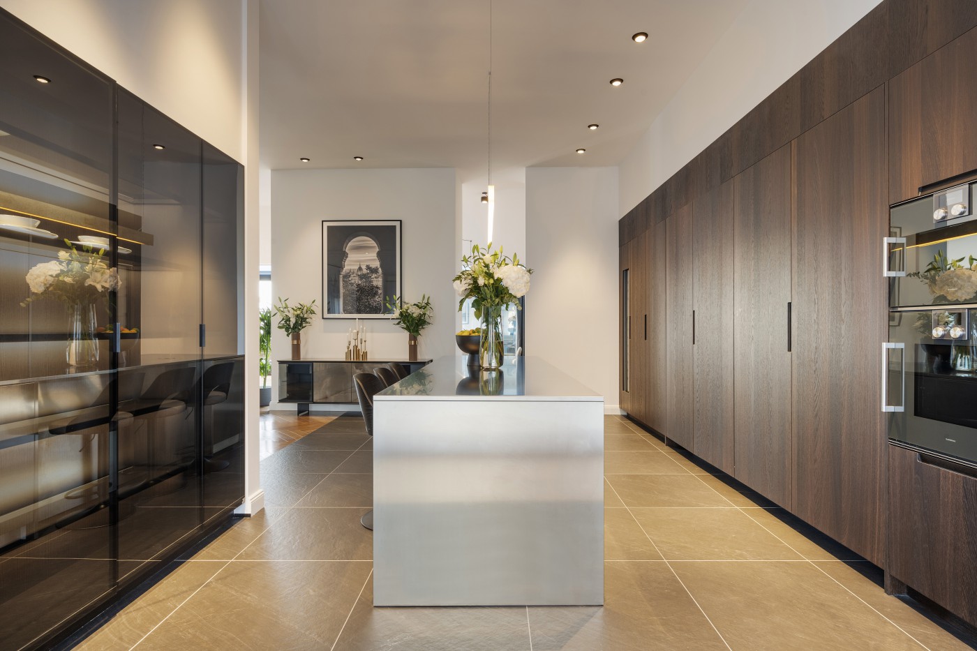 Modern luxury with stainless steel and walnut surfaces, including:
